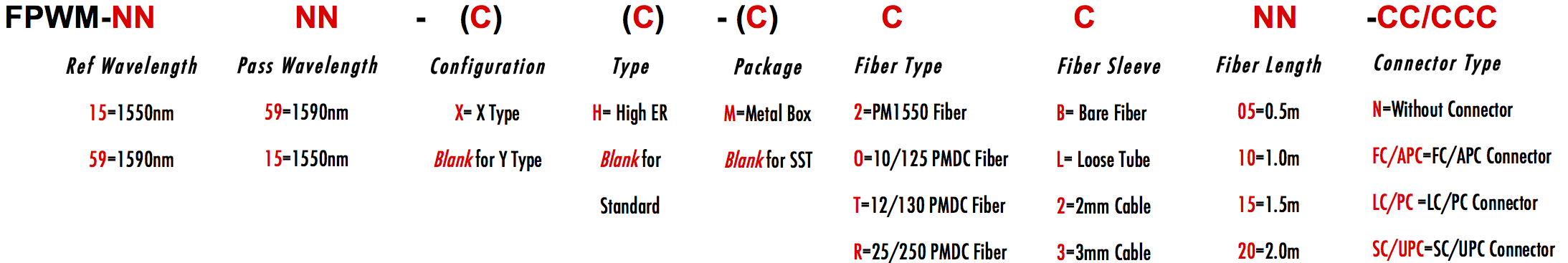 FPWM 1550nm 1590nm C L Band PM WDM Filter Wavelength division filtre filtro Multiplexer Demux Combiner Divide Splitter PM1550 LMA 8/125um 10/125um 10/130um 12/130um 20/125um 20/130um 25/250um 25/300um 30/250um PMSC Single Clad Cladding PMDC Double Clad 3-port Y Type 4-port X Type Polarization Maintaining PM Extinction Ratio ER Panda
