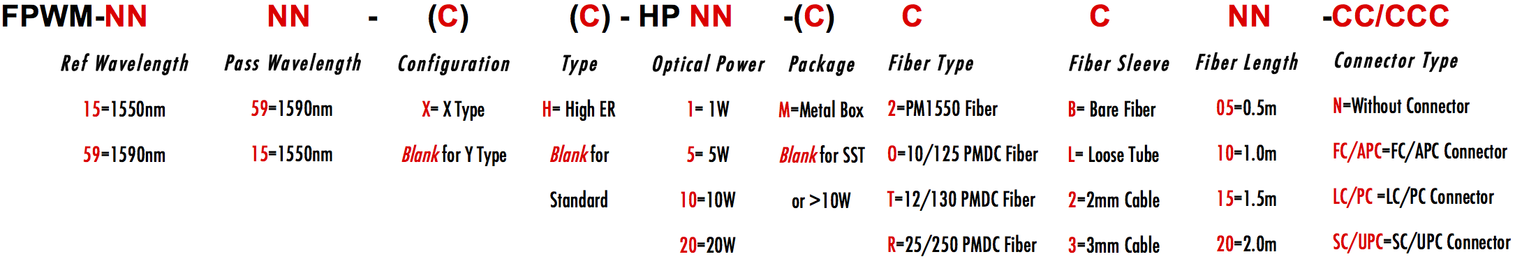 FPWM 1550nm 1590nm C L Band PM WDM Filter Wavelength division filtre filtro Multiplexer Demux Combiner Divide Splitter PM1550 LMA 8/125um 10/125um 10/130um 12/130um 20/125um 20/130um 25/250um 25/300um 30/250um PMSC Single Clad Cladding PMDC Double Clad 3-port Y Type 4-port X Type Polarization Maintaining PM Extinction Ratio ER Panda