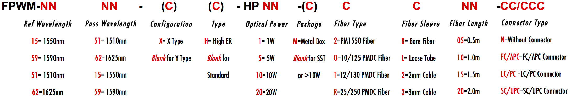FPWM 1590nm L 1625nm Band Supervisory PM WDM Filter Wavelength division filtre filtro Multiplexer Demux Combiner Divide Splitter PM1550 LMA 8/125um 10/125um 10/130um 12/130um 20/125um 20/130um 25/250um 25/300um 30/250um PMSC Single Clad Cladding PMDC Double Clad 3-port Y Type 4-port X Type Polarization Maintaining PM Extinction Ratio ER Panda