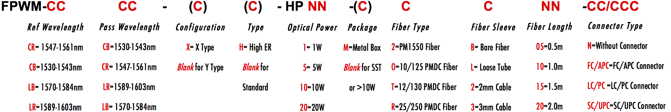 FPWM 1577nm L 1596nm Band Red Blue PM WDM Filter Wavelength division filtre filtro Multiplexer Demux Combiner Divide Splitter PM1550 LMA 8/125um 10/125um 10/130um 12/130um 20/125um 20/130um 25/250um 25/300um 30/250um PMSC Single Clad Cladding PMDC Double Clad 3-port Y Type 4-port X Type Polarization Maintaining PM Extinction Ratio ER Panda