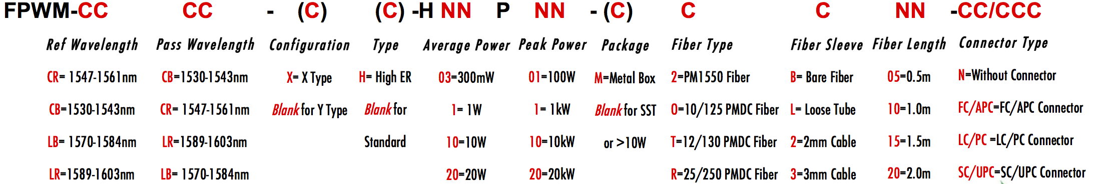 FPWM 1577nm L 1596nm Band Red Blue PM WDM Filter Wavelength division filtre filtro Multiplexer Demux Combiner Divide Splitter PM1550 LMA 8/125um 10/125um 10/130um 12/130um 20/125um 20/130um 25/250um 25/300um 30/250um PMSC Single Clad Cladding PMDC Double Clad 3-port Y Type 4-port X Type Polarization Maintaining PM Extinction Ratio ER Panda