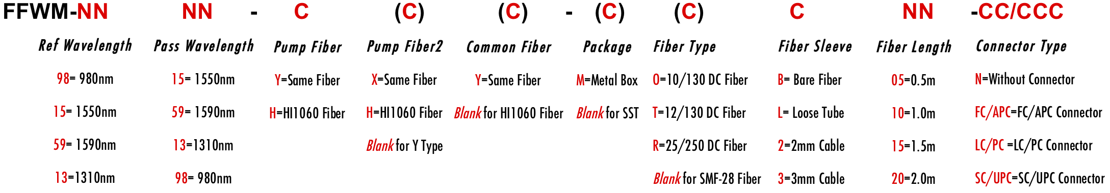 FFWM 980nm 1550nm 975nm 1530nm 1560nm 1540nm 970nm 976nm WDM Filter Wavelength division filtre filtro Multiplexer Demux Combiner Divide Splitter SMF-28 SMF28 LMA 8/125um HI1060 6/125um 10/125um 10/130um 12/130um 20/125um 20/130um 25/250um 25/300um 30/250um SC Single Clad Cladding DC Double Clad 3-port Y Type 4-port X Type FFWM 980nm 1550nm 975nm 1530nm 1560nm 1540nm 970nm 976nm WDM Filter Wavelength division filtre filtro Multiplexer Demux Combiner Divide Splitter SMF-28 SMF28 LMA 8/125um HI1060 6/125um 10/125um 10/130um 12/130um 20/125um 20/130um 25/250um 25/300um 30/250um SC Single Clad Cladding DC Double Clad 3-port Y Type 4-port X Type FFWM 980nm 1550nm 975nm 1530nm 1560nm 1540nm 970nm 976nm WDM Filter Wavelength division filtre filtro Multiplexer Demux Combiner Divide Splitter SMF-28 SMF28 LMA 8/125um HI1060 6/125um 10/125um 10/130um 12/130um 20/125um 20/130um 25/250um 25/300um 30/250um SC Single Clad Cladding DC Double Clad 3-port Y Type 4-port X Type 9815 1598 YXY YHY HXY HHY YY HY