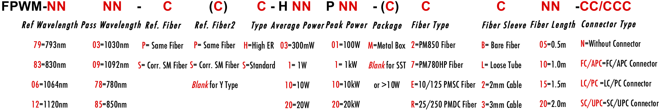 FPWM 780nm 770nm 790nm 785nm 775nm 1020nm 1010nm 1030nm 1025nm PM WDM Filter Wavelength division filtre filtro Multiplexer Demux Combiner Divide Splitter PM980 PM850 PM780HP PM1060L PM1060LFA LMA 6/125um 10/125um 10/130um 15/125um 15/130um 20/125um 20/130um 25/250um 30/250um PMSC Single Clad Cladding PMDC Double Clad 3-port Y Type 4-port X Type Polarization Maintaining PM Extinction Ratio ER Panda for Pulse Power 1W 2W 3W 5W 10W 15W 20W 100W 1kW 2kW 3kW 5kW 10kW 15kW 20kW average peak ns ps fs kW Watt Watts HP FPWM 780nm 770nm 790nm 785nm 775nm 1020nm 1010nm 1030nm 1025nm PM WDM Filter Wavelength division filtre filtro Multiplexer Demux Combiner Divide Splitter PM980 PM850 PM780HP PM1060L PM1060LFA LMA 6/125um 10/125um 10/130um 15/125um 15/130um 20/125um 20/130um 25/250um 30/250um PMSC Single Clad Cladding PMDC Double Clad 3-port Y Type 4-port X Type Polarization Maintaining PM Extinction Ratio ER Panda for Pulse Power 1W 2W 3W 5W 10W 15W 20W 100W 1kW 2kW 3kW 5kW 10kW 15kW 20kW average peak ns ps fs kW Watt Watts HP FPWM 780nm 770nm 790nm 785nm 775nm 1020nm 1010nm 1030nm 1025nm PM WDM Filter Wavelength division filtre filtro Multiplexer Demux Combiner Divide Splitter PM980 PM850 PM780HP PM1060L PM1060LFA LMA 6/125um 10/125um 10/130um 15/125um 15/130um 20/125um 20/130um 25/250um 30/250um PMSC Single Clad Cladding PMDC Double Clad 3-port Y Type 4-port X Type Polarization Maintaining PM Extinction Ratio ER Panda for Pulse Power 1W 2W 3W 5W 10W 15W 20W 100W 1kW 2kW 3kW 5kW 10kW 15kW 20kW average peak ns ps fs kW Watt Watts HP 7802 0278 PH PS SH SS PPH PSH PPS PSS SPH SSH SPS SSS