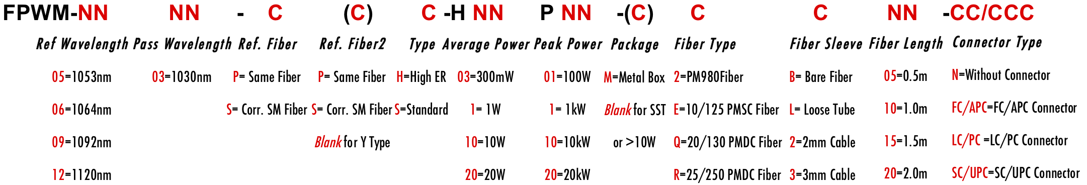 FPWM 1030nm 1026nm 1034nm 1070nm 1060nm 1080nm 1075nm PM WDM Filter Wavelength division filtre filtro Multiplexer Demux Combiner Divide Splitter PM980 PM1060L PM1060LFA LMA 6/125um 10/125um 10/130um 15/125um 15/130um 20/125um 20/130um 25/250um 30/250um PMSC Single Clad Cladding PMDC Double Clad 3-port Y Type 4-port X Type Polarization Maintaining PM Extinction Ratio ER Panda for Pulse Power 1W 2W 3W 5W 10W 15W 20W 100W 1kW 2kW 3kW 5kW 10kW 15kW 20kW average peak ns ps fs kW Watt Watts HP FPWM 1030nm 1026nm 1034nm 1070nm 1060nm 1080nm 1075nm PM WDM Filter Wavelength division filtre filtro Multiplexer Demux Combiner Divide Splitter PM980 PM1060L PM1060LFA LMA 6/125um 10/125um 10/130um 15/125um 15/130um 20/125um 20/130um 25/250um 30/250um PMSC Single Clad Cladding PMDC Double Clad 3-port Y Type 4-port X Type Polarization Maintaining PM Extinction Ratio ER Panda for Pulse Power 1W 2W 3W 5W 10W 15W 20W 100W 1kW 2kW 3kW 5kW 10kW 15kW 20kW average peak ns ps fs kW Watt Watts HP FPWM 1030nm 1026nm 1034nm 1070nm 1060nm 1080nm 1075nm PM WDM Filter Wavelength division filtre filtro Multiplexer Demux Combiner Divide Splitter PM980 PM1060L PM1060LFA LMA 6/125um 10/125um 10/130um 15/125um 15/130um 20/125um 20/130um 25/250um 30/250um PMSC Single Clad Cladding PMDC Double Clad 3-port Y Type 4-port X Type Polarization Maintaining PM Extinction Ratio ER Panda for Pulse Power 1W 2W 3W 5W 10W 15W 20W 100W 1kW 2kW 3kW 5kW 10kW 15kW 20kW average peak ns ps fs kW Watt Watts HP 0703 PH PS SH SS PPH PXH PPS PXS SPH SXH SPS SXS