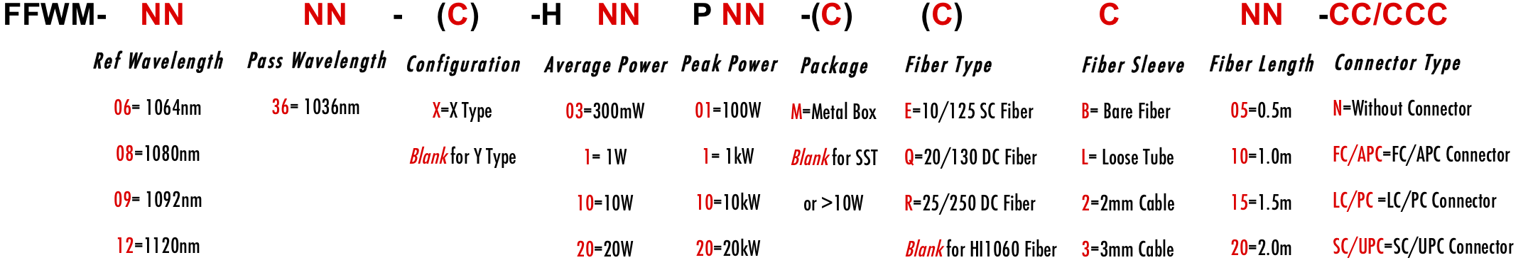 FFWM 1036nm 1031nm 1041nm 1040nm 1092nm 1090nm 1087nm 1097nm 1095nm WDM Filter Wavelength division filtre filtro Multiplexer Demux Combiner Divide Splitter HI1060 LMA 6/125um 10/125um 10/130um 15/125um 15/130um 20/125um 20/130um 25/250um 30/250um SC Single Clad Cladding DC Double Clad 3-port Y Type 4-port X Type for Pulse Power 1W 2W 3W 5W 10W 15W 20W 100W 1kW 2kW 3kW 5kW 10kW 15kW 20kW average peak ns ps fs kW Watt Watts HP FFWM 1036nm 1031nm 1041nm 1040nm 1092nm 1090nm 1087nm 1097nm 1095nm WDM Filter Wavelength division filtre filtro Multiplexer Demux Combiner Divide Splitter HI1060 LMA 6/125um 10/125um 10/130um 15/125um 15/130um 20/125um 20/130um 25/250um 30/250um SC Single Clad Cladding DC Double Clad 3-port Y Type 4-port X Type for Pulse Power 1W 2W 3W 5W 10W 15W 20W 100W 1kW 2kW 3kW 5kW 10kW 15kW 20kW average peak ns ps fs kW Watt Watts HP FFWM 1036nm 1031nm 1041nm 1040nm 1092nm 1090nm 1087nm 1097nm 1095nm WDM Filter Wavelength division filtre filtro Multiplexer Demux Combiner Divide Splitter HI1060 LMA 6/125um 10/125um 10/130um 15/125um 15/130um 20/125um 20/130um 25/250um 30/250um SC Single Clad Cladding DC Double Clad 3-port Y Type 4-port X Type for Pulse Power 1W 2W 3W 5W 10W 15W 20W 100W 1kW 2kW 3kW 5kW 10kW 15kW 20kW average peak ns ps fs kW Watt Watts HP 0936X