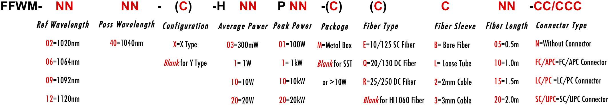 FFWM 1040nm 1035nm 1045nm 1042nm 1064nm 1054nm 1074nm 1060nm 1070nm 1065nm WDM Filter Wavelength division filtre filtro Multiplexer Demux Combiner Divide Splitter HI1060 LMA 6/125um 10/125um 10/130um 15/125um 15/130um 20/125um 20/130um 25/250um 30/250um SC Single Clad Cladding DC Double Clad 3-port Y Type 4-port X Type for Pulse Power 1W 2W 3W 5W 10W 15W 20W 100W 1kW 2kW 3kW 5kW 10kW 15kW 20kW average peak ns ps fs kW Watt Watts HP FFWM 1040nm 1035nm 1045nm 1042nm 1064nm 1054nm 1074nm 1060nm 1070nm 1065nm WDM Filter Wavelength division filtre filtro Multiplexer Demux Combiner Divide Splitter HI1060 LMA 6/125um 10/125um 10/130um 15/125um 15/130um 20/125um 20/130um 25/250um 30/250um SC Single Clad Cladding DC Double Clad 3-port Y Type 4-port X Type for Pulse Power 1W 2W 3W 5W 10W 15W 20W 100W 1kW 2kW 3kW 5kW 10kW 15kW 20kW average peak ns ps fs kW Watt Watts HP FFWM 1040nm 1035nm 1045nm 1042nm 1064nm 1054nm 1074nm 1060nm 1070nm 1065nm WDM Filter Wavelength division filtre filtro Multiplexer Demux Combiner Divide Splitter HI1060 LMA 6/125um 10/125um 10/130um 15/125um 15/130um 20/125um 20/130um 25/250um 30/250um SC Single Clad Cladding DC Double Clad 3-port Y Type 4-port X Type for Pulse Power 1W 2W 3W 5W 10W 15W 20W 100W 1kW 2kW 3kW 5kW 10kW 15kW 20kW average peak ns ps fs kW Watt Watts HP 0604X
