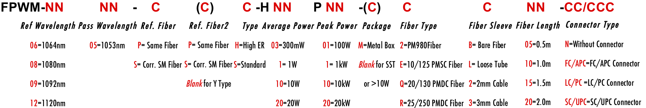 FPWM 1053nm 1052nm 1054nm 1070nm 1060nm 1080nm 1075nm PM WDM Filter Wavelength division filtre filtro Multiplexer Demux Combiner Divide Splitter PM980 PM1060L PM1060LFA LMA 6/125um 10/125um 10/130um 15/125um 15/130um 20/125um 20/130um 25/250um 30/250um PMSC Single Clad Cladding PMDC Double Clad 3-port Y Type 4-port X Type Polarization Maintaining PM Extinction Ratio ER Panda for Pulse Power 1W 2W 3W 5W 10W 15W 20W 100W 1kW 2kW 3kW 5kW 10kW 15kW 20kW average peak ns ps fs kW Watt Watts HP FPWM 1053nm 1052nm 1054nm 1070nm 1060nm 1080nm 1075nm PM WDM Filter Wavelength division filtre filtro Multiplexer Demux Combiner Divide Splitter PM980 PM1060L PM1060LFA LMA 6/125um 10/125um 10/130um 15/125um 15/130um 20/125um 20/130um 25/250um 30/250um PMSC Single Clad Cladding PMDC Double Clad 3-port Y Type 4-port X Type Polarization Maintaining PM Extinction Ratio ER Panda for Pulse Power 1W 2W 3W 5W 10W 15W 20W 100W 1kW 2kW 3kW 5kW 10kW 15kW 20kW average peak ns ps fs kW Watt Watts HP FPWM 1053nm 1052nm 1054nm 1070nm 1060nm 1080nm 1075nm PM WDM Filter Wavelength division filtre filtro Multiplexer Demux Combiner Divide Splitter PM980 PM1060L PM1060LFA LMA 6/125um 10/125um 10/130um 15/125um 15/130um 20/125um 20/130um 25/250um 30/250um PMSC Single Clad Cladding PMDC Double Clad 3-port Y Type 4-port X Type Polarization Maintaining PM Extinction Ratio ER Panda for Pulse Power 1W 2W 3W 5W 10W 15W 20W 100W 1kW 2kW 3kW 5kW 10kW 15kW 20kW average peak ns ps fs kW Watt Watts HP 0705 PH PS SH SS PPH PXH PPS PXS SPH SXH SPS SXS