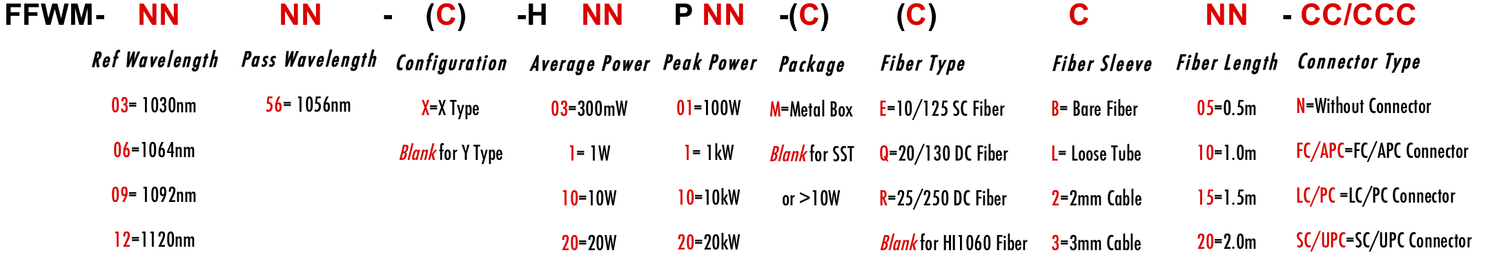 FFWM 1056nm 1054nm 1058nm 1055nm 1030nm 1020nm 1040nm 1036nm 1035nm 1026nm WDM Filter Wavelength division filtre filtro Multiplexer Demux Combiner Divide Splitter HI1060 LMA 6/125um 10/125um 10/130um 15/125um 15/130um 20/125um 20/130um 25/250um 30/250um SC Single Clad Cladding DC Double Clad 3-port Y Type 4-port X Type for Pulse Power 1W 2W 3W 5W 10W 15W 20W 100W 1kW 2kW 3kW 5kW 10kW 15kW 20kW average peak ns ps fs kW Watt Watts HP FFWM 1056nm 1054nm 1058nm 1055nm 1030nm 1020nm 1040nm 1036nm 1035nm 1026nm WDM Filter Wavelength division filtre filtro Multiplexer Demux Combiner Divide Splitter HI1060 LMA 6/125um 10/125um 10/130um 15/125um 15/130um 20/125um 20/130um 25/250um 30/250um SC Single Clad Cladding DC Double Clad 3-port Y Type 4-port X Type for Pulse Power 1W 2W 3W 5W 10W 15W 20W 100W 1kW 2kW 3kW 5kW 10kW 15kW 20kW average peak ns ps fs kW Watt Watts HP FFWM 1056nm 1054nm 1058nm 1055nm 1030nm 1020nm 1040nm 1036nm 1035nm 1026nm WDM Filter Wavelength division filtre filtro Multiplexer Demux Combiner Divide Splitter HI1060 LMA 6/125um 10/125um 10/130um 15/125um 15/130um 20/125um 20/130um 25/250um 30/250um SC Single Clad Cladding DC Double Clad 3-port Y Type 4-port X Type for Pulse Power 1W 2W 3W 5W 10W 15W 20W 100W 1kW 2kW 3kW 5kW 10kW 15kW 20kW average peak ns ps fs kW Watt Watts HP 0356X