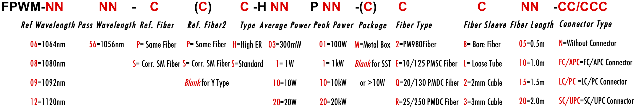 FPWM 1056nm 1054nm 1058nm 1055nm 1092nm 1090nm 1087nm 1097nm 1095nm PM WDM Filter Wavelength division filtre filtro Multiplexer Demux Combiner Divide Splitter PM980 PM1060L PM1060LFA LMA 6/125um 10/125um 10/130um 15/125um 15/130um 20/125um 20/130um 25/250um 30/250um PMSC Single Clad Cladding PMDC Double Clad 3-port Y Type 4-port X Type Polarization Maintaining PM Extinction Ratio ER Panda for Pulse Power 1W 2W 3W 5W 10W 15W 20W 100W 1kW 2kW 3kW 5kW 10kW 15kW 20kW average peak ns ps fs kW Watt Watts HP FPWM 1056nm 1054nm 1058nm 1055nm 1092nm 1090nm 1087nm 1097nm 1095nm PM WDM Filter Wavelength division filtre filtro Multiplexer Demux Combiner Divide Splitter PM980 PM1060L PM1060LFA LMA 6/125um 10/125um 10/130um 15/125um 15/130um 20/125um 20/130um 25/250um 30/250um PMSC Single Clad Cladding PMDC Double Clad 3-port Y Type 4-port X Type Polarization Maintaining PM Extinction Ratio ER Panda for Pulse Power 1W 2W 3W 5W 10W 15W 20W 100W 1kW 2kW 3kW 5kW 10kW 15kW 20kW average peak ns ps fs kW Watt Watts HP FPWM 1056nm 1054nm 1058nm 1055nm 1092nm 1090nm 1087nm 1097nm 1095nm PM WDM Filter Wavelength division filtre filtro Multiplexer Demux Combiner Divide Splitter PM980 PM1060L PM1060LFA LMA 6/125um 10/125um 10/130um 15/125um 15/130um 20/125um 20/130um 25/250um 30/250um PMSC Single Clad Cladding PMDC Double Clad 3-port Y Type 4-port X Type Polarization Maintaining PM Extinction Ratio ER Panda for Pulse Power 1W 2W 3W 5W 10W 15W 20W 100W 1kW 2kW 3kW 5kW 10kW 15kW 20kW average peak ns ps fs kW Watt Watts HP 0956 PH PS SH SS PPH PXH PPS PXS SPH SXH SPS SXS