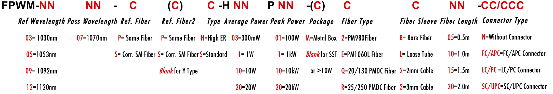 FPWM 1070nm 1069nm 1071nm 1080nm 1075nm 1085nm 1083nm PM WDM Filter Wavelength division filtre filtro Multiplexer Demux Combiner Divide Splitter PM980 PM1060L PM1060LFA LMA 6/125um 10/125um 10/130um 15/125um 15/130um 20/125um 20/130um 25/250um 30/250um PMSC Single Clad Cladding PMDC Double Clad 3-port Y Type 4-port X Type Polarization Maintaining PM Extinction Ratio ER Panda for Pulse Power 1W 2W 3W 5W 10W 15W 20W 100W 1kW 2kW 3kW 5kW 10kW 15kW 20kW average peak ns ps fs kW Watt Watts HP FPWM 1070nm 1069nm 1071nm 1080nm 1075nm 1085nm 1083nm PM WDM Filter Wavelength division filtre filtro Multiplexer Demux Combiner Divide Splitter PM980 PM1060L PM1060LFA LMA 6/125um 10/125um 10/130um 15/125um 15/130um 20/125um 20/130um 25/250um 30/250um PMSC Single Clad Cladding PMDC Double Clad 3-port Y Type 4-port X Type Polarization Maintaining PM Extinction Ratio ER Panda for Pulse Power 1W 2W 3W 5W 10W 15W 20W 100W 1kW 2kW 3kW 5kW 10kW 15kW 20kW average peak ns ps fs kW Watt Watts HP FPWM 1070nm 1069nm 1071nm 1080nm 1075nm 1085nm 1083nm PM WDM Filter Wavelength division filtre filtro Multiplexer Demux Combiner Divide Splitter PM980 PM1060L PM1060LFA LMA 6/125um 10/125um 10/130um 15/125um 15/130um 20/125um 20/130um 25/250um 30/250um PMSC Single Clad Cladding PMDC Double Clad 3-port Y Type 4-port X Type Polarization Maintaining PM Extinction Ratio ER Panda for Pulse Power 1W 2W 3W 5W 10W 15W 20W 100W 1kW 2kW 3kW 5kW 10kW 15kW 20kW average peak ns ps fs kW Watt Watts HP 0807 PH PS SH SS PPH PXH PPS PXS SPH SXH SPS SXS