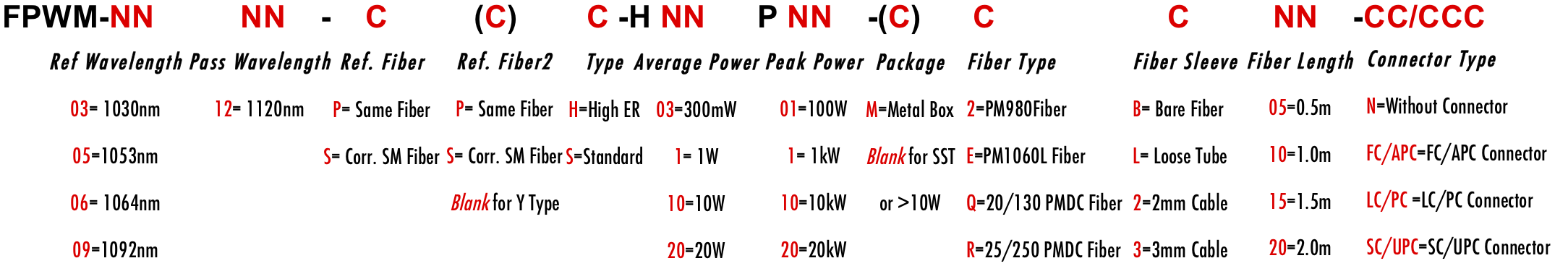 FPWM 1120nm 1115nm 1125nm 1118nm 1123nm 1053nm 1040nm 1063nm 1050nm 1055nm PM WDM Filter Wavelength division filtre filtro Multiplexer Demux Combiner Divide Splitter PM980 PM1060L PM1060LFA LMA 6/125um 10/125um 10/130um 15/125um 15/130um 20/125um 20/130um 25/250um 30/250um PMSC Single Clad Cladding PMDC Double Clad 3-port Y Type 4-port X Type Polarization Maintaining PM Extinction Ratio ER Panda for Pulse Power 1W 2W 3W 5W 10W 15W 20W 100W 1kW 2kW 3kW 5kW 10kW 15kW 20kW average peak ns ps fs kW Watt Watts HP FPWM 1120nm 1115nm 1125nm 1118nm 1123nm 1053nm 1040nm 1063nm 1050nm 1055nm PM WDM Filter Wavelength division filtre filtro Multiplexer Demux Combiner Divide Splitter PM980 PM1060L PM1060LFA LMA 6/125um 10/125um 10/130um 15/125um 15/130um 20/125um 20/130um 25/250um 30/250um PMSC Single Clad Cladding PMDC Double Clad 3-port Y Type 4-port X Type Polarization Maintaining PM Extinction Ratio ER Panda for Pulse Power 1W 2W 3W 5W 10W 15W 20W 100W 1kW 2kW 3kW 5kW 10kW 15kW 20kW average peak ns ps fs kW Watt Watts HP FPWM 1120nm 1115nm 1125nm 1118nm 1123nm 1053nm 1040nm 1063nm 1050nm 1055nm PM WDM Filter Wavelength division filtre filtro Multiplexer Demux Combiner Divide Splitter PM980 PM1060L PM1060LFA LMA 6/125um 10/125um 10/130um 15/125um 15/130um 20/125um 20/130um 25/250um 30/250um PMSC Single Clad Cladding PMDC Double Clad 3-port Y Type 4-port X Type Polarization Maintaining PM Extinction Ratio ER Panda for Pulse Power 1W 2W 3W 5W 10W 15W 20W 100W 1kW 2kW 3kW 5kW 10kW 15kW 20kW average peak ns ps fs kW Watt Watts HP 0512 PH PS SH SS PPH PXH PPS PXS SPH SXH SPS SXS