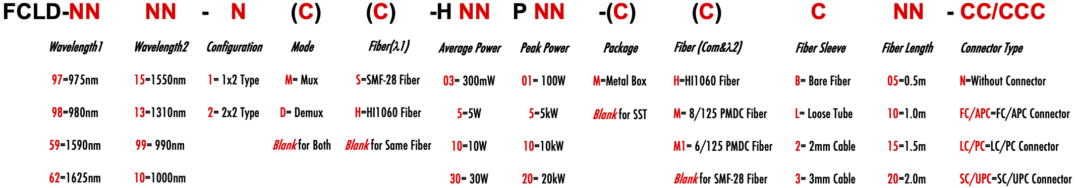 FCLD 980nm 975nm 1310nm fused WDM Wavelength division Multiplex demultiplex coupler splitter and combiner for high optical power and pulse optical power with Fused Biconical Taper (FBT) technology Stopiony sprz??enie multipleksuj?ce WDM z podzia?em fali, rozdzielacz mocy optycznej o wysokiej mocy optycznej i impulsowej oraz zespó?, wykorzystuj?cy technologi? stopionego podwójnego sto?ka (FBT) Schmelzen WDM-Wellenkomponenten-Multiplexe-Multiplexe Kupplung Hochleistungsoptische und Pulsoptische Leistung Separatoren und Kombinatoren mit Schmelzen Doppelkegel-Technologie (FBT) Smeltet WDM Wave Division Multiplexing Coupler med høj optisk effekt og pulserende optisk effektdelinger og kombinatorer, der anvender teknologi med smeltet dobbelt tilspidsning (FBT) Fusion WDM Division d'ondes multiplexé couplage haute puissance optique et pulsé séparateur de puissance optique et combinateur, utilisant la technologie à double cône fusionnée (FBT) Sulautettu WDM Wave Division Multiplexing-yhdistelmä, korkea optinen teho ja pulssin optinen virranjakaja ja yhdistelmä, jossa on sulautettu kaksi kartiota (FBT)-tekniikkaa Smeltende WDM Wave Division Multiplexing Coupling High Optical Power Distributor en Pulse Optical Power Divider en Combiner met gesmolten dubbele taps (FBT)-technologie Rozpušt?ní WDM Wave Division Multiplex Coupler High Optical Power Division a Pulse Optical Power Separator a Combinator s technologií Smelted Double Cone (FBT) Fusão WDM Divisão de Ondas Múltiplo Duplicador Acoplador de Potência Óptica de Alta Potência e Pulso Separador de Potência Óptica e Combinador com Tecnologia Fusão Dupla Conica (FBT) Fusión WDM división de onda multiplexado y multiplexado acoplador de alta potencia óptica y pulso separación de potencia óptica y combinador, utilizando tecnología de doble cono fundido (FBT) Fuso WDM divisione d'onda multiplexato accoppiatore di potenza ottica ad alta potenza e separazione di potenza ottica pulsata e combinatore con tecnologia a doppio cono fuso (FBT) SMF-28 SMF28 8/125um 9/125um HI1060 HI1060Flex Flex 6/125um 8/125um 1x2 2x2 3-port Y Type 4-port X Type