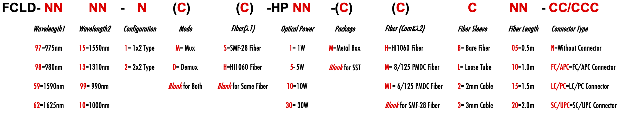 FCLD 980nm 975nm 1625nm 1620nm fused WDM Wavelength division Multiplex demultiplex coupler splitter and combiner for high optical power and pulse optical power with Fused Biconical Taper (FBT) technology Stopiony sprz??enie multipleksuj?ce WDM z podzia?em fali, rozdzielacz mocy optycznej o wysokiej mocy optycznej i impulsowej oraz zespó?, wykorzystuj?cy technologi? stopionego podwójnego sto?ka (FBT) Schmelzen WDM-Wellenkomponenten-Multiplexe-Multiplexe Kupplung Hochleistungsoptische und Pulsoptische Leistung Separatoren und Kombinatoren mit Schmelzen Doppelkegel-Technologie (FBT) Smeltet WDM Wave Division Multiplexing Coupler med høj optisk effekt og pulserende optisk effektdelinger og kombinatorer, der anvender teknologi med smeltet dobbelt tilspidsning (FBT) Fusion WDM Division d'ondes multiplexé couplage haute puissance optique et pulsé séparateur de puissance optique et combinateur, utilisant la technologie à double cône fusionnée (FBT) Sulautettu WDM Wave Division Multiplexing-yhdistelmä, korkea optinen teho ja pulssin optinen virranjakaja ja yhdistelmä, jossa on sulautettu kaksi kartiota (FBT)-tekniikkaa Smeltende WDM Wave Division Multiplexing Coupling High Optical Power Distributor en Pulse Optical Power Divider en Combiner met gesmolten dubbele taps (FBT)-technologie Rozpušt?ní WDM Wave Division Multiplex Coupler High Optical Power Division a Pulse Optical Power Separator a Combinator s technologií Smelted Double Cone (FBT) Fusão WDM Divisão de Ondas Múltiplo Duplicador Acoplador de Potência Óptica de Alta Potência e Pulso Separador de Potência Óptica e Combinador com Tecnologia Fusão Dupla Conica (FBT) Fusión WDM división de onda multiplexado y multiplexado acoplador de alta potencia óptica y pulso separación de potencia óptica y combinador, utilizando tecnología de doble cono fundido (FBT) Fuso WDM divisione d'onda multiplexato accoppiatore di potenza ottica ad alta potenza e separazione di potenza ottica pulsata e combinatore con tecnologia a doppio cono fuso (FBT) SMF-28 SMF28 8/125um 9/125um HI1060 HI1060Flex Flex 6/125um 8/125um 1x2 2x2 3-port Y Type 4-port X Type