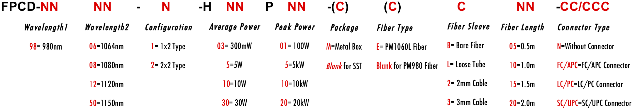 FPCD 980nm 976nm 975nm 970nm 990nm 1070nm 1060nm 1080nm 1075nm 1065nm 1072nm Fused WDM Wavelength division Coupler coupleur Acoplador Multiplexer Demux Combiner Divide Splitter PM980 PM980XP 6/125um 1x2 2x2 3-port Y Type 4-port X Type Polarization Maintaining PM Extinction Ratio ER Panda for Pulse Power 1W 2W 3W 5W 10W 15W 20W 25W 30W 100W 1kW 2kW 3kW 5kW 10kW 15kW 20kW average peak ns ps fs kW Watt Watts HP FPCD 980nm 976nm 975nm 970nm 990nm 1070nm 1060nm 1080nm 1075nm 1065nm 1072nm Fused WDM Wavelength division Coupler coupleur Acoplador Multiplexer Demux Combiner Divide Splitter PM980 PM980XP 6/125um 1x2 2x2 3-port Y Type 4-port X Type Polarization Maintaining PM Extinction Ratio ER Panda for Pulse Power 1W 2W 3W 5W 10W 15W 20W 25W 30W 100W 1kW 2kW 3kW 5kW 10kW 15kW 20kW average peak ns ps fs kW Watt Watts HP FPCD 980nm 976nm 975nm 970nm 990nm 1070nm 1060nm 1080nm 1075nm 1065nm 1072nm Fused WDM Wavelength division Coupler coupleur Acoplador Multiplexer Demux Combiner Divide Splitter PM980 PM980XP 6/125um 1x2 2x2 3-port Y Type 4-port X Type Polarization Maintaining PM Extinction Ratio ER Panda for Pulse Power 1W 2W 3W 5W 10W 15W 20W 25W 30W 100W 1kW 2kW 3kW 5kW 10kW 15kW 20kW average peak ns ps fs kW Watt Watts HP 9807 98071 98072
