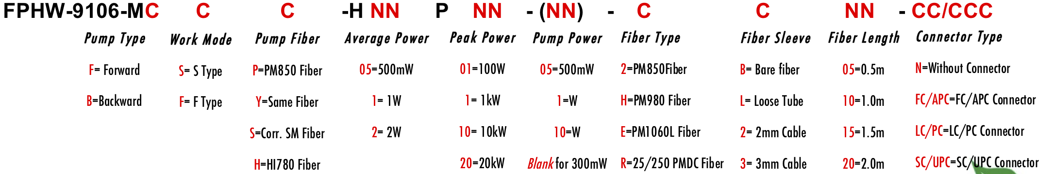 FPHW 915nm 900nm 930nm 910nm 905nm 920nm 925nm 1064nm 1060nm 1050nm 1070nm 1074nm 1065nm 1055nm PM WDM Filter Wavelength division Isolator Hybrid Iso HYB HYBR HY HB isolation isolate isolateur isolater filtre filtro Multiplexer Demux Combiner Divide Splitter PM980 PM980XP PM850 PM780HP 5/125um LMA 6/125um 10/125um 10/130um 15/130um 20/125um 20/130um 25/250um PMSC Single Clad Cladding PMDC Double Clad Polarization Maintaining PM Extinction Ratio ER Panda for Pulse Power 500mW 1W 2W 3W 5W 10W 15W 20W 100W 1kW 2kW 3kW 5kW 10kW 15kW 20kW average peak ns ps fs kW Watt Watts HP FPHW 915nm 900nm 930nm 910nm 905nm 920nm 925nm 1064nm 1060nm 1050nm 1070nm 1074nm 1065nm 1055nm PM WDM Filter Wavelength division Isolator Hybrid Iso HYB HYBR HY HB isolation isolate isolateur isolater filtre filtro Multiplexer Demux Combiner Divide Splitter PM980 PM980XP PM850 PM780HP 5/125um LMA 6/125um 10/125um 10/130um 15/130um 20/125um 20/130um 25/250um PMSC Single Clad Cladding PMDC Double Clad Polarization Maintaining PM Extinction Ratio ER Panda for Pulse Power 500mW 1W 2W 3W 5W 10W 15W 20W 100W 1kW 2kW 3kW 5kW 10kW 15kW 20kW average peak ns ps fs kW Watt Watts HP FPHW 915nm 900nm 930nm 910nm 905nm 920nm 925nm 1064nm 1060nm 1050nm 1070nm 1074nm 1065nm 1055nm PM WDM Filter Wavelength division Isolator Hybrid Iso HYB HYBR HY HB isolation isolate isolateur isolater filtre filtro Multiplexer Demux Combiner Divide Splitter PM980 PM980XP PM850 PM780HP 5/125um LMA 6/125um 10/125um 10/130um 15/130um 20/125um 20/130um 25/250um PMSC Single Clad Cladding PMDC Double Clad Polarization Maintaining PM Extinction Ratio ER Panda for Pulse Power 500mW 1W 2W 3W 5W 10W 15W 20W 100W 1kW 2kW 3kW 5kW 10kW 15kW 20kW average peak ns ps fs kW Watt Watts HP 9106 MFSY MFSP MFSH MFSS MFFY MFFP MFFH MFFH MBSY MBSP MBFH MBSS MBFY MBFP MBFH MBFS 05 1 2 3 4 5 6 7 8 9 10