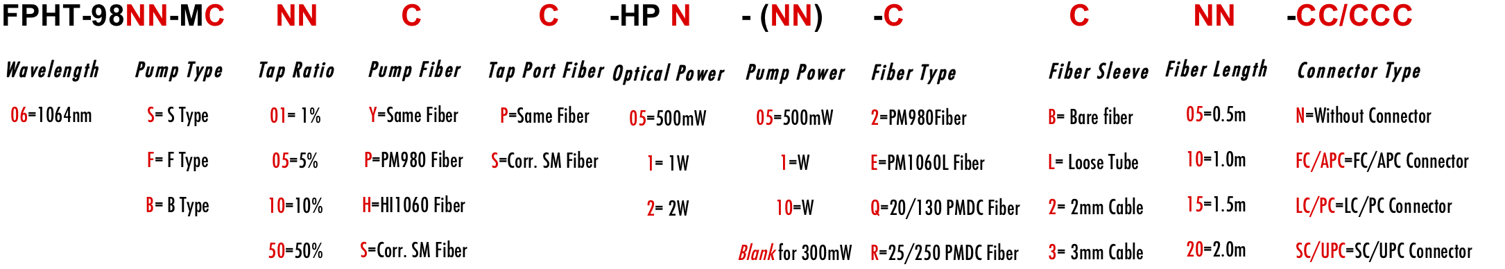 Pump: Same Fiber, Corr. SM Fiber, PM980 Fiber or HI1060 Fiber