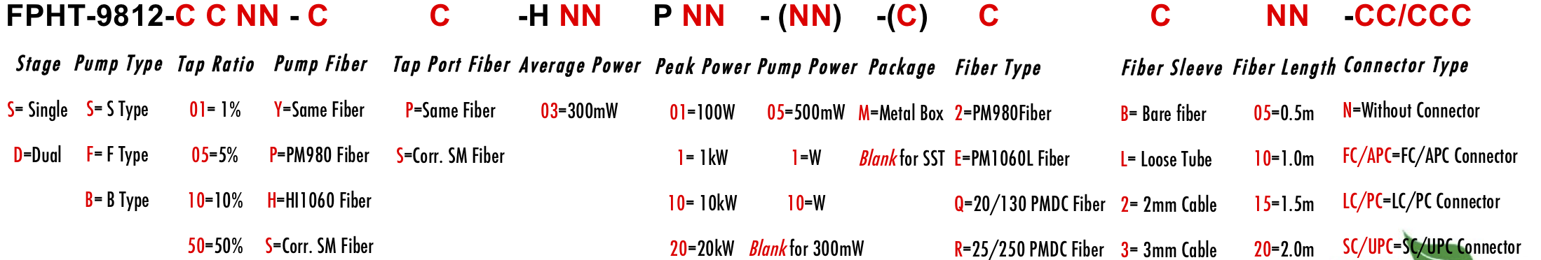 FPHT 980nm 975nm 970nm985nm 990nm 1120nm 1110nm 1130nm 1115nm 1125nm PM WDM Filter Wavelength division Isolator Hybrid Iso HYB HYBR HY HB isolation isolate isolateur isolater filtre filtro Multiplexer Demux Combiner Divide Splitter Tap Coupler coupleur dieses Acoplador PM980 PM980XP LMA 6/125um 10/125um 10/130um 15/130um 20/125um 20/130um 25/250um PMSC Single Clad Cladding PMDC Double Clad Polarization Maintaining PM Extinction Ratio ER Panda