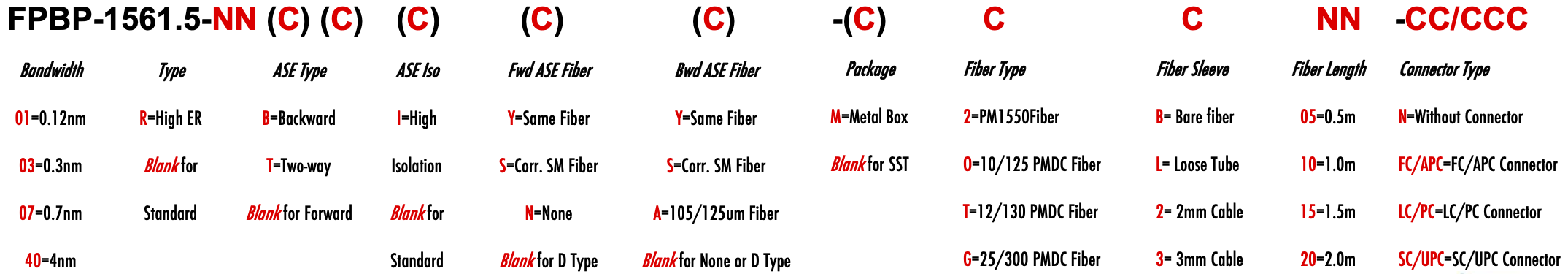 FPBP FPWM 1561.5nm Singlemode PM Fiber Bandpass Filter Bandwidth 0.12nm 0.3nm 0.7nm 4.0nm 4nm bandstop filter or notch filter with bandwidth filtre passe-bande monomode ou filtre coupe-bande ou filtre coupe-bande avec bande passante filtro de paso de banda monomodo o filtro de supresión de banda o filtro de muesca con ancho de banda Singlemode-Bandpassfilter oder Bandsperrfilter oder Kerbfilter mit Bandbreite filtro passa-banda monomodo ou filtro bandstop ou filtro notch com largura de banda filtro passa-banda monomodale o filtro bandstop o filtro notch con larghezza di banda yksimuotoinen kaistanpäästösuodatin tai kaistanpysäytyssuodatin tai kaistanleveyssuodatin PM1550 LMA 8/125um 10/125um 10/130um 12/125um 12/130um 15/125um 15/130um 20/125um 20/130um 25/250um 25/300um 30/250um SC Single Clad Cladding DC Double Clad or large mode area fiber fibre à simple gaine ou fibre à double gaine ou fibre à grande zone de mode ingle Clad-Faser oder Double Clad-Faser oder Large-Mode-Area-Faser ibra con revestimiento simple o fibra con revestimiento doble o fibra de área modal grande fibra de revestimento simples ou fibra de revestimento duplo ou fibra de área de modo grande ibra a rivestimento singolo o fibra a doppio rivestimento o fibra a grande area modale yksikerroksinen kuitu tai kaksinkertainen kuitu tai suurimuotoinen kuitu 2-port D Type 3-port Y Type 4-port X Type Type D à 2 ports Type Y à 3 ports Type X à 4 ports -Port-D-Typ 3-Port-Y-Typ 4-Port-X-Typ Tipo D de 2 puertos Tipo Y de 3 puertos Tipo X de 4 puertos Tipo D de 2 portas Tipo Y de 3 portas Tipo X de 4 portas ipo D a 2 porte Tipo Y a 3 porte Tipo X a 4 porte 2-porttinen D-tyyppi 3-porttinen Y-tyyppi 4-porttinen X-tyyppi Polarization Maintaining PM Extinction Ratio ER Panda tie maintien de la polarisation fibre panda ou cravate avec taux d'extinction polarisationserhaltende Panda- oder Bindefaser mit Extinktionsverhältnis polarización manteniendo panda o fibra de amarre con relación de extinción polarização mantendo a fibra panda ou tie com taxa de extinção polarizzazione mantenendo panda o legare fibra con rapporto di estinzione olarisaatiota ylläpitävä panda- tai sidekuitu ekstinktiosuhteella