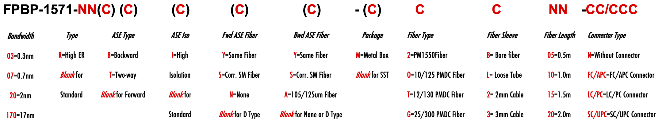 FPBP FPWM 1571nm Singlemode PM Fiber Bandpass Filter Bandwidth 0.3nm 0.7nm 2.0nm 2nm 17nm 17.0nm bandstop filter or notch filter with bandwidth filtre passe-bande monomode ou filtre coupe-bande ou filtre coupe-bande avec bande passante filtro de paso de banda monomodo o filtro de supresión de banda o filtro de muesca con ancho de banda Singlemode-Bandpassfilter oder Bandsperrfilter oder Kerbfilter mit Bandbreite filtro passa-banda monomodo ou filtro bandstop ou filtro notch com largura de banda filtro passa-banda monomodale o filtro bandstop o filtro notch con larghezza di banda yksimuotoinen kaistanpäästösuodatin tai kaistanpysäytyssuodatin tai kaistanleveyssuodatin PM1550 LMA 8/125um 10/125um 10/130um 12/125um 12/130um 15/125um 15/130um 20/125um 20/130um 25/250um 25/300um 30/250um SC Single Clad Cladding DC Double Clad or large mode area fiber fibre à simple gaine ou fibre à double gaine ou fibre à grande zone de mode ingle Clad-Faser oder Double Clad-Faser oder Large-Mode-Area-Faser ibra con revestimiento simple o fibra con revestimiento doble o fibra de área modal grande fibra de revestimento simples ou fibra de revestimento duplo ou fibra de área de modo grande ibra a rivestimento singolo o fibra a doppio rivestimento o fibra a grande area modale yksikerroksinen kuitu tai kaksinkertainen kuitu tai suurimuotoinen kuitu 2-port D Type 3-port Y Type 4-port X Type Type D à 2 ports Type Y à 3 ports Type X à 4 ports -Port-D-Typ 3-Port-Y-Typ 4-Port-X-Typ Tipo D de 2 puertos Tipo Y de 3 puertos Tipo X de 4 puertos Tipo D de 2 portas Tipo Y de 3 portas Tipo X de 4 portas ipo D a 2 porte Tipo Y a 3 porte Tipo X a 4 porte 2-porttinen D-tyyppi 3-porttinen Y-tyyppi 4-porttinen X-tyyppi Polarization Maintaining PM Extinction Ratio ER Panda tie maintien de la polarisation fibre panda ou cravate avec taux d'extinction polarisationserhaltende Panda- oder Bindefaser mit Extinktionsverhältnis polarización manteniendo panda o fibra de amarre con relación de extinción polarização mantendo a fibra panda ou tie com taxa de extinção polarizzazione mantenendo panda o legare fibra con rapporto di estinzione olarisaatiota ylläpitävä panda- tai sidekuitu ekstinktiosuhteella