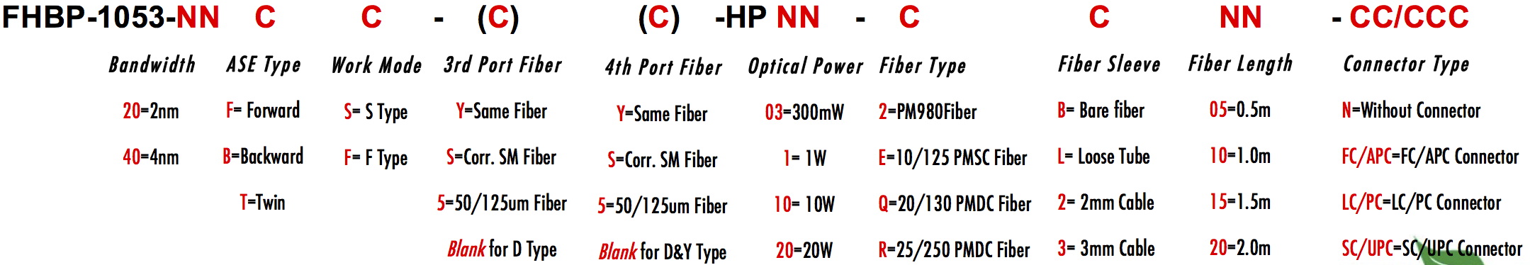 FHBP 1053nm High Power singlemode PM Fiber Bandpass Filter Isolator Hybrid Bandwidth Isolation 1.0nm 2.0nm 4.0nm 1nm 2nm 4nm singlemode fiber hybrid device of bandpass filter and isolator Single-Mode-Fasermischung für Bandpassfilter und Isolatoren Mélange de fibre optique monomode pour filtres passe-bande et isolateurs Yhden moduulin optinen yhdistelmä, jossa on läpikuultava suodatin ja eristäjä Dispositivo de mistura de fibra óptica monomodo para filtros e isoladores de passagem de banda Mezclador de fibra óptica monomodo para filtros de paso y aisladores Miscelatore di fibre ottiche monomodo per filtri passa-banda e isolatori Jednomodowe urz?dzenie mieszaj?ce ?wiat?owody z filtrem przej?ciowym i izolatorem Single-mode fiberblanding med pass-through-filter og isolering Single-mode glasvezelhybride met pass-through filters en isolators Jednomodevé optické hybridní za?ízení s filtrem a izolatorem Single-mode fiberblandade enheter med passfilter och isolerare Geçi? filtreleri ve karant?s? içeren tek modlu fiber kar???m kaynaklar? PM980 PM980XP PM980HP LMA 6/125um 10/125um 10/130um 12/130um 15/125um 15/130um 20/125um 20/130um 25/250um 30/250um SC Single Clad Cladding DC Double Clad or large mode area fiber fibre à simple gaine ou fibre à double gaine ou fibre à grande zone de mode ingle Clad-Faser oder Double Clad-Faser oder Large-Mode-Area-Faser ibra con revestimiento simple o fibra con revestimiento doble o fibra de área modal grande fibra de revestimento simples ou fibra de revestimento duplo ou fibra de área de modo grande ibra a rivestimento singolo o fibra a doppio rivestimento o fibra a grande area modale yksikerroksinen kuitu tai kaksinkertainen kuitu tai suurimuotoinen kuitu 2-port D Type 3-port Y Type 4-port X Type Type D à 2 ports Type Y à 3 ports Type X à 4 ports -Port-D-Typ 3-Port-Y-Typ 4-Port-X-Typ Tipo D de 2 puertos Tipo Y de 3 puertos Tipo X de 4 puertos Tipo D de 2 portas Tipo Y de 3 portas Tipo X de 4 portas ipo D a 2 porte Tipo Y a 3 porte Tipo X a 4 porte 2-porttinen D-tyyppi 3-porttinen Y-tyyppi 4-porttinen X-tyyppi Polarization Maintaining PM Extinction Ratio ER Panda tie maintien de la polarisation fibre panda ou cravate avec taux d'extinction polarisationserhaltende Panda- oder Bindefaser mit Extinktionsverhältnis polarización manteniendo panda o fibra de amarre con relación de extinción polarização mantendo a fibra panda ou tie com taxa de extinção polarizzazione mantenendo panda o legare fibra con rapporto di estinzione olarisaatiota ylläpitävä panda- tai sidekuitu ekstinktiosuhteella
