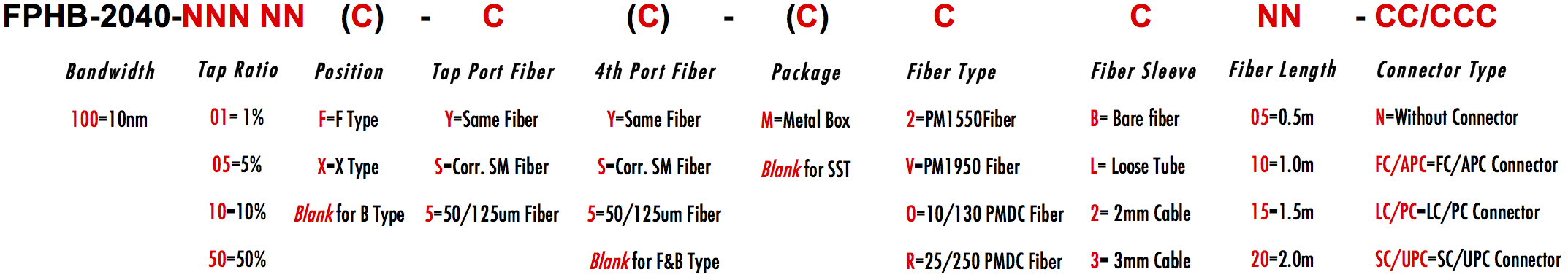FPHB 2040nm PM Bandpass Filter Tap Coupler Splitter Hybrid BP BPT filtre filtrar SM Singlemode coupleur dieses Acoplador HYB HYBR HY HB hybride híbrido paso de banda bande passante BW Bandwidth 10nm PM1550 PM1950 LMA 8/125um 10/125um 10/130um 20/125um 20/130um 25/250um PMSC Single Clad Cladding PMDC Double Clad 2-port D Type 3-port Y Type 4-port X Type Polarization Maintaining PM Extinction Ratio ER Panda