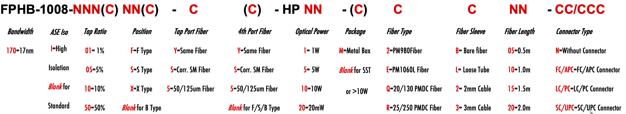 FPHB 1008nm Singlemode PM Fiber Bandpass Filter Tap coupler splitter Hybrid Bandwidth 17.0nm 17nm optical fiber bandpass filter with tap coupler or splitter hybrid device or bandstop filter Glasfaser-Bandpassfilter mit Abzweigkoppler oder Splitter-Hybridgerät oder Bandsperrfilter Filtro de paso de banda de fibra óptica con acoplador de grifo o dispositivo híbrido divisor o filtro de banda filtre passe-bande à fibre optique avec coupleur de prise ou dispositif hybride séparateur ou filtre coupe-bande optinen kuitukaistanpäästösuodatin, jossa on väliliitin tai jakajahybridilaite tai kaistanstop-suodatin filtro passa-banda de fibra óptica com acoplador de torneira ou dispositivo híbrido divisor ou filtro de parada de banda ?wiat?owodowy filtr pasmowo-przepustowy z hybrydowym urz?dzeniem sprz?gaj?cym lub rozdzielaczem lub filtrem pasmowym optisk fiber båndpassfilter med tappkopler eller splitter hybridenhet eller båndstoppfilter filtro passa banda in fibra ottica con accoppiatore di presa o dispositivo ibrido sdoppiatore o filtro elimina banda glasvezelbanddoorlaatfilter met kraankoppeling of splitter hybride apparaat of bandstopfilter pásmový filtr s optickým vláknem s odbo?ovacím vazebním ?lenem nebo rozbo?ovacím hybridním za?ízením nebo pásmovým filtrem PM980 PM980XP PM980HP LMA 6/125um 10/125um 10/130um 12/130um 15/125um 15/130um 20/125um 20/130um 25/250um 30/250um SC Single Clad Cladding DC Double Clad or large mode area fiber fibre à simple gaine ou fibre à double gaine ou fibre à grande zone de mode ingle Clad-Faser oder Double Clad-Faser oder Large-Mode-Area-Faser ibra con revestimiento simple o fibra con revestimiento doble o fibra de área modal grande fibra de revestimento simples ou fibra de revestimento duplo ou fibra de área de modo grande ibra a rivestimento singolo o fibra a doppio rivestimento o fibra a grande area modale yksikerroksinen kuitu tai kaksinkertainen kuitu tai suurimuotoinen kuitu 2-port D Type 3-port Y Type 4-port X Type Type D à 2 ports Type Y à 3 ports Type X à 4 ports -Port-D-Typ 3-Port-Y-Typ 4-Port-X-Typ Tipo D de 2 puertos Tipo Y de 3 puertos Tipo X de 4 puertos Tipo D de 2 portas Tipo Y de 3 portas Tipo X de 4 portas ipo D a 2 porte Tipo Y a 3 porte Tipo X a 4 porte 2-porttinen D-tyyppi 3-porttinen Y-tyyppi 4-porttinen X-tyyppi Polarization Maintaining PM Extinction Ratio ER Panda tie maintien de la polarisation fibre panda ou cravate avec taux d'extinction polarisationserhaltende Panda- oder Bindefaser mit Extinktionsverhältnis polarización manteniendo panda o fibra de amarre con relación de extinción polarização mantendo a fibra panda ou tie com taxa de extinção polarizzazione mantenendo panda o legare fibra con rapporto di estinzione olarisaatiota ylläpitävä panda- tai sidekuitu ekstinktiosuhteella