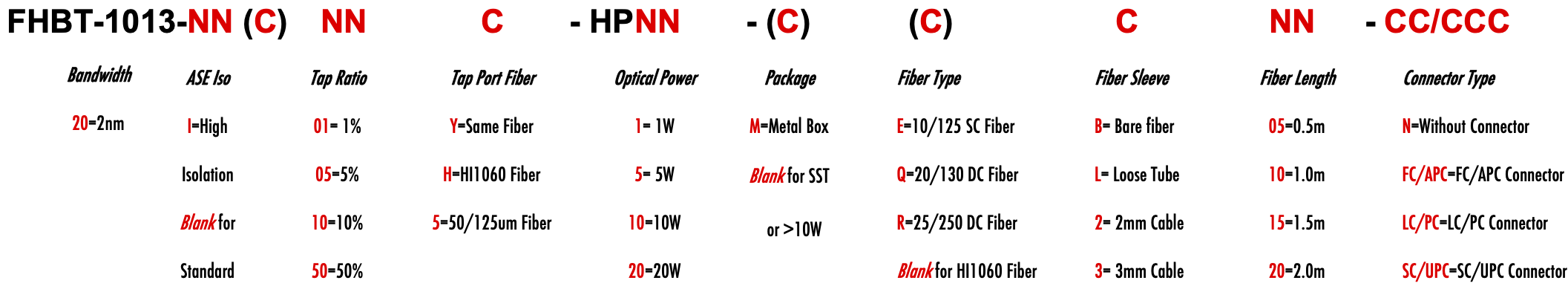 FHBT 1013nm Singlemode SM Fiber Bandpass Filter Tap coupler splitter Hybrid Bandwidth 2.0nm optical fiber bandpass filter with tap coupler or splitter hybrid device or bandstop filter Glasfaser-Bandpassfilter mit Abzweigkoppler oder Splitter-Hybridgerät oder Bandsperrfilter Filtro de paso de banda de fibra óptica con acoplador de grifo o dispositivo híbrido divisor o filtro de banda filtre passe-bande à fibre optique avec coupleur de prise ou dispositif hybride séparateur ou filtre coupe-bande optinen kuitukaistanpäästösuodatin, jossa on väliliitin tai jakajahybridilaite tai kaistanstop-suodatin filtro passa-banda de fibra óptica com acoplador de torneira ou dispositivo híbrido divisor ou filtro de parada de banda ?wiat?owodowy filtr pasmowo-przepustowy z hybrydowym urz?dzeniem sprz?gaj?cym lub rozdzielaczem lub filtrem pasmowym optisk fiber båndpassfilter med tappkopler eller splitter hybridenhet eller båndstoppfilter filtro passa banda in fibra ottica con accoppiatore di presa o dispositivo ibrido sdoppiatore o filtro elimina banda glasvezelbanddoorlaatfilter met kraankoppeling of splitter hybride apparaat of bandstopfilter pásmový filtr s optickým vláknem s odbo?ovacím vazebním ?lenem nebo rozbo?ovacím hybridním za?ízením nebo pásmovým filtrem HI1060 1060XP LMA 6/125um 10/125um 10/130um 12/125um 12/130um 15/125um 15/130um 20/125um 20/130um 25/250um 30/250um SC Single Clad Cladding DC Double Clad or large mode area fiber fibre à simple gaine ou fibre à double gaine ou fibre à grande zone de mode ingle Clad-Faser oder Double Clad-Faser oder Large-Mode-Area-Faser ibra con revestimiento simple o fibra con revestimiento doble o fibra de área modal grande fibra de revestimento simples ou fibra de revestimento duplo ou fibra de área de modo grande ibra a rivestimento singolo o fibra a doppio rivestimento o fibra a grande area modale yksikerroksinen kuitu tai kaksinkertainen kuitu tai suurimuotoinen kuitu 2-port D Type 3-port Y Type 4-port X Type Type D à 2 ports Type Y à 3 ports Type X à 4 ports -Port-D-Typ 3-Port-Y-Typ 4-Port-X-Typ Tipo D de 2 puertos Tipo Y de 3 puertos Tipo X de 4 puertos Tipo D de 2 portas Tipo Y de 3 portas Tipo X de 4 portas ipo D a 2 porte Tipo Y a 3 porte Tipo X a 4 porte 2-porttinen D-tyyppi 3-porttinen Y-tyyppi 4-porttinen X-tyyppi