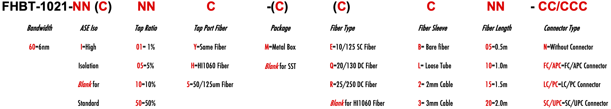 FHBT 1021nm Singlemode SM Fiber Bandpass Filter Tap coupler splitter Hybrid Bandwidth 6nm 6.0nm optical fiber bandpass filter with tap coupler or splitter hybrid device or bandstop filter Glasfaser-Bandpassfilter mit Abzweigkoppler oder Splitter-Hybridgerät oder Bandsperrfilter Filtro de paso de banda de fibra óptica con acoplador de grifo o dispositivo híbrido divisor o filtro de banda filtre passe-bande à fibre optique avec coupleur de prise ou dispositif hybride séparateur ou filtre coupe-bande optinen kuitukaistanpäästösuodatin, jossa on väliliitin tai jakajahybridilaite tai kaistanstop-suodatin filtro passa-banda de fibra óptica com acoplador de torneira ou dispositivo híbrido divisor ou filtro de parada de banda ?wiat?owodowy filtr pasmowo-przepustowy z hybrydowym urz?dzeniem sprz?gaj?cym lub rozdzielaczem lub filtrem pasmowym optisk fiber båndpassfilter med tappkopler eller splitter hybridenhet eller båndstoppfilter filtro passa banda in fibra ottica con accoppiatore di presa o dispositivo ibrido sdoppiatore o filtro elimina banda glasvezelbanddoorlaatfilter met kraankoppeling of splitter hybride apparaat of bandstopfilter pásmový filtr s optickým vláknem s odbo?ovacím vazebním ?lenem nebo rozbo?ovacím hybridním za?ízením nebo pásmovým filtrem HI1060 1060XP LMA 6/125um 10/125um 10/130um 12/125um 12/130um 15/125um 15/130um 20/125um 20/130um 25/250um 30/250um SC Single Clad Cladding DC Double Clad or large mode area fiber fibre à simple gaine ou fibre à double gaine ou fibre à grande zone de mode ingle Clad-Faser oder Double Clad-Faser oder Large-Mode-Area-Faser ibra con revestimiento simple o fibra con revestimiento doble o fibra de área modal grande fibra de revestimento simples ou fibra de revestimento duplo ou fibra de área de modo grande ibra a rivestimento singolo o fibra a doppio rivestimento o fibra a grande area modale yksikerroksinen kuitu tai kaksinkertainen kuitu tai suurimuotoinen kuitu 2-port D Type 3-port Y Type 4-port X Type Type D à 2 ports Type Y à 3 ports Type X à 4 ports -Port-D-Typ 3-Port-Y-Typ 4-Port-X-Typ Tipo D de 2 puertos Tipo Y de 3 puertos Tipo X de 4 puertos Tipo D de 2 portas Tipo Y de 3 portas Tipo X de 4 portas ipo D a 2 porte Tipo Y a 3 porte Tipo X a 4 porte 2-porttinen D-tyyppi 3-porttinen Y-tyyppi 4-porttinen X-tyyppi