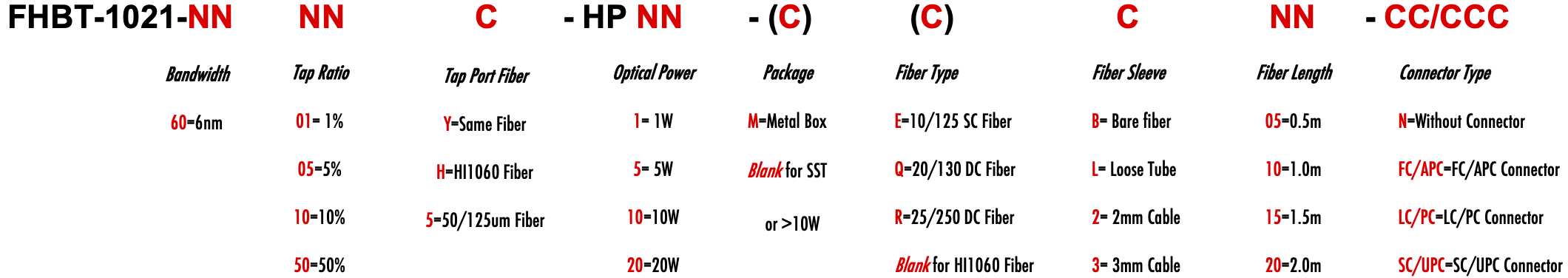 FHBT 1021nm Singlemode SM Fiber Bandpass Filter Tap coupler splitter Hybrid Bandwidth 6nm 6.0nm optical fiber bandpass filter with tap coupler or splitter hybrid device or bandstop filter Glasfaser-Bandpassfilter mit Abzweigkoppler oder Splitter-Hybridgerät oder Bandsperrfilter Filtro de paso de banda de fibra óptica con acoplador de grifo o dispositivo híbrido divisor o filtro de banda filtre passe-bande à fibre optique avec coupleur de prise ou dispositif hybride séparateur ou filtre coupe-bande optinen kuitukaistanpäästösuodatin, jossa on väliliitin tai jakajahybridilaite tai kaistanstop-suodatin filtro passa-banda de fibra óptica com acoplador de torneira ou dispositivo híbrido divisor ou filtro de parada de banda ?wiat?owodowy filtr pasmowo-przepustowy z hybrydowym urz?dzeniem sprz?gaj?cym lub rozdzielaczem lub filtrem pasmowym optisk fiber båndpassfilter med tappkopler eller splitter hybridenhet eller båndstoppfilter filtro passa banda in fibra ottica con accoppiatore di presa o dispositivo ibrido sdoppiatore o filtro elimina banda glasvezelbanddoorlaatfilter met kraankoppeling of splitter hybride apparaat of bandstopfilter pásmový filtr s optickým vláknem s odbo?ovacím vazebním ?lenem nebo rozbo?ovacím hybridním za?ízením nebo pásmovým filtrem HI1060 1060XP LMA 6/125um 10/125um 10/130um 12/125um 12/130um 15/125um 15/130um 20/125um 20/130um 25/250um 30/250um SC Single Clad Cladding DC Double Clad or large mode area fiber fibre à simple gaine ou fibre à double gaine ou fibre à grande zone de mode ingle Clad-Faser oder Double Clad-Faser oder Large-Mode-Area-Faser ibra con revestimiento simple o fibra con revestimiento doble o fibra de área modal grande fibra de revestimento simples ou fibra de revestimento duplo ou fibra de área de modo grande ibra a rivestimento singolo o fibra a doppio rivestimento o fibra a grande area modale yksikerroksinen kuitu tai kaksinkertainen kuitu tai suurimuotoinen kuitu 2-port D Type 3-port Y Type 4-port X Type Type D à 2 ports Type Y à 3 ports Type X à 4 ports -Port-D-Typ 3-Port-Y-Typ 4-Port-X-Typ Tipo D de 2 puertos Tipo Y de 3 puertos Tipo X de 4 puertos Tipo D de 2 portas Tipo Y de 3 portas Tipo X de 4 portas ipo D a 2 porte Tipo Y a 3 porte Tipo X a 4 porte 2-porttinen D-tyyppi 3-porttinen Y-tyyppi 4-porttinen X-tyyppi