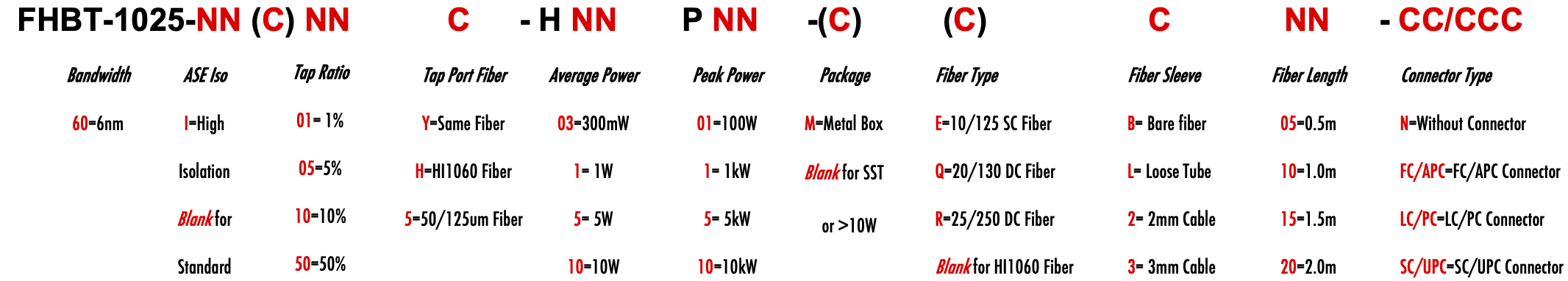 FHBT 1025nm Singlemode SM Fiber Bandpass Filter Tap coupler splitter Hybrid Bandwidth 2nm 2.0nm 6nm 6.0nm optical fiber bandpass filter with tap coupler or splitter hybrid device or bandstop filter Glasfaser-Bandpassfilter mit Abzweigkoppler oder Splitter-Hybridgerät oder Bandsperrfilter Filtro de paso de banda de fibra óptica con acoplador de grifo o dispositivo híbrido divisor o filtro de banda filtre passe-bande à fibre optique avec coupleur de prise ou dispositif hybride séparateur ou filtre coupe-bande optinen kuitukaistanpäästösuodatin, jossa on väliliitin tai jakajahybridilaite tai kaistanstop-suodatin filtro passa-banda de fibra óptica com acoplador de torneira ou dispositivo híbrido divisor ou filtro de parada de banda ?wiat?owodowy filtr pasmowo-przepustowy z hybrydowym urz?dzeniem sprz?gaj?cym lub rozdzielaczem lub filtrem pasmowym optisk fiber båndpassfilter med tappkopler eller splitter hybridenhet eller båndstoppfilter filtro passa banda in fibra ottica con accoppiatore di presa o dispositivo ibrido sdoppiatore o filtro elimina banda glasvezelbanddoorlaatfilter met kraankoppeling of splitter hybride apparaat of bandstopfilter pásmový filtr s optickým vláknem s odbo?ovacím vazebním ?lenem nebo rozbo?ovacím hybridním za?ízením nebo pásmovým filtrem HI1060 1060XP LMA 6/125um 10/125um 10/130um 12/125um 12/130um 15/125um 15/130um 20/125um 20/130um 25/250um 30/250um SC Single Clad Cladding DC Double Clad or large mode area fiber fibre à simple gaine ou fibre à double gaine ou fibre à grande zone de mode ingle Clad-Faser oder Double Clad-Faser oder Large-Mode-Area-Faser ibra con revestimiento simple o fibra con revestimiento doble o fibra de área modal grande fibra de revestimento simples ou fibra de revestimento duplo ou fibra de área de modo grande ibra a rivestimento singolo o fibra a doppio rivestimento o fibra a grande area modale yksikerroksinen kuitu tai kaksinkertainen kuitu tai suurimuotoinen kuitu 2-port D Type 3-port Y Type 4-port X Type Type D à 2 ports Type Y à 3 ports Type X à 4 ports -Port-D-Typ 3-Port-Y-Typ 4-Port-X-Typ Tipo D de 2 puertos Tipo Y de 3 puertos Tipo X de 4 puertos Tipo D de 2 portas Tipo Y de 3 portas Tipo X de 4 portas ipo D a 2 porte Tipo Y a 3 porte Tipo X a 4 porte 2-porttinen D-tyyppi 3-porttinen Y-tyyppi 4-porttinen X-tyyppi