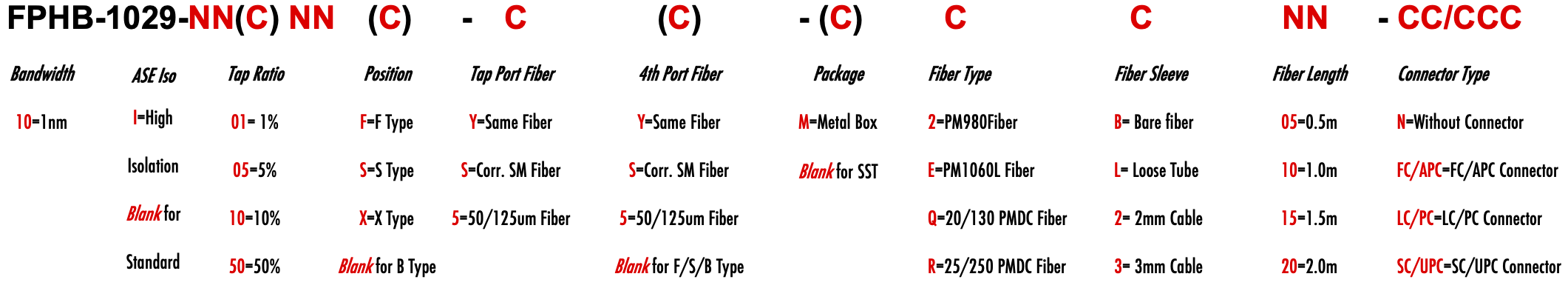 FPHB 1029nm Singlemode PM Fiber Bandpass Filter Tap coupler splitter Hybrid Bandwidth 1nm 1.0nm optical fiber bandpass filter with tap coupler or splitter hybrid device or bandstop filter Glasfaser-Bandpassfilter mit Abzweigkoppler oder Splitter-Hybridgerät oder Bandsperrfilter Filtro de paso de banda de fibra óptica con acoplador de grifo o dispositivo híbrido divisor o filtro de banda filtre passe-bande à fibre optique avec coupleur de prise ou dispositif hybride séparateur ou filtre coupe-bande optinen kuitukaistanpäästösuodatin, jossa on väliliitin tai jakajahybridilaite tai kaistanstop-suodatin filtro passa-banda de fibra óptica com acoplador de torneira ou dispositivo híbrido divisor ou filtro de parada de banda ?wiat?owodowy filtr pasmowo-przepustowy z hybrydowym urz?dzeniem sprz?gaj?cym lub rozdzielaczem lub filtrem pasmowym optisk fiber båndpassfilter med tappkopler eller splitter hybridenhet eller båndstoppfilter filtro passa banda in fibra ottica con accoppiatore di presa o dispositivo ibrido sdoppiatore o filtro elimina banda glasvezelbanddoorlaatfilter met kraankoppeling of splitter hybride apparaat of bandstopfilter pásmový filtr s optickým vláknem s odbo?ovacím vazebním ?lenem nebo rozbo?ovacím hybridním za?ízením nebo pásmovým filtrem PM980 PM980XP PM980HP LMA 6/125um 10/125um 10/130um 12/130um 15/125um 15/130um 20/125um 20/130um 25/250um 30/250um SC Single Clad Cladding DC Double Clad or large mode area fiber fibre à simple gaine ou fibre à double gaine ou fibre à grande zone de mode ingle Clad-Faser oder Double Clad-Faser oder Large-Mode-Area-Faser ibra con revestimiento simple o fibra con revestimiento doble o fibra de área modal grande fibra de revestimento simples ou fibra de revestimento duplo ou fibra de área de modo grande ibra a rivestimento singolo o fibra a doppio rivestimento o fibra a grande area modale yksikerroksinen kuitu tai kaksinkertainen kuitu tai suurimuotoinen kuitu 2-port D Type 3-port Y Type 4-port X Type Type D à 2 ports Type Y à 3 ports Type X à 4 ports -Port-D-Typ 3-Port-Y-Typ 4-Port-X-Typ Tipo D de 2 puertos Tipo Y de 3 puertos Tipo X de 4 puertos Tipo D de 2 portas Tipo Y de 3 portas Tipo X de 4 portas ipo D a 2 porte Tipo Y a 3 porte Tipo X a 4 porte 2-porttinen D-tyyppi 3-porttinen Y-tyyppi 4-porttinen X-tyyppi Polarization Maintaining PM Extinction Ratio ER Panda tie maintien de la polarisation fibre panda ou cravate avec taux d'extinction polarisationserhaltende Panda- oder Bindefaser mit Extinktionsverhältnis polarización manteniendo panda o fibra de amarre con relación de extinción polarização mantendo a fibra panda ou tie com taxa de extinção polarizzazione mantenendo panda o legare fibra con rapporto di estinzione olarisaatiota ylläpitävä panda- tai sidekuitu ekstinktiosuhteella