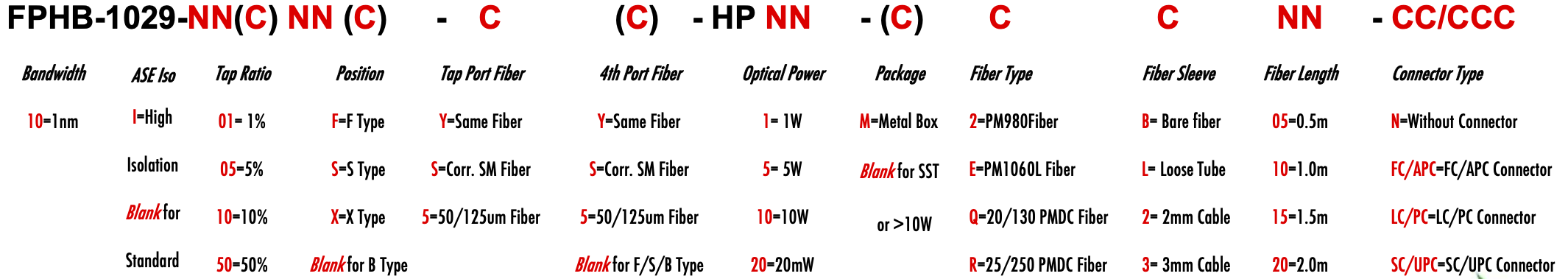 FPHB 1029nm Singlemode PM Fiber Bandpass Filter Tap coupler splitter Hybrid Bandwidth 1nm 1.0nm optical fiber bandpass filter with tap coupler or splitter hybrid device or bandstop filter Glasfaser-Bandpassfilter mit Abzweigkoppler oder Splitter-Hybridgerät oder Bandsperrfilter Filtro de paso de banda de fibra óptica con acoplador de grifo o dispositivo híbrido divisor o filtro de banda filtre passe-bande à fibre optique avec coupleur de prise ou dispositif hybride séparateur ou filtre coupe-bande optinen kuitukaistanpäästösuodatin, jossa on väliliitin tai jakajahybridilaite tai kaistanstop-suodatin filtro passa-banda de fibra óptica com acoplador de torneira ou dispositivo híbrido divisor ou filtro de parada de banda ?wiat?owodowy filtr pasmowo-przepustowy z hybrydowym urz?dzeniem sprz?gaj?cym lub rozdzielaczem lub filtrem pasmowym optisk fiber båndpassfilter med tappkopler eller splitter hybridenhet eller båndstoppfilter filtro passa banda in fibra ottica con accoppiatore di presa o dispositivo ibrido sdoppiatore o filtro elimina banda glasvezelbanddoorlaatfilter met kraankoppeling of splitter hybride apparaat of bandstopfilter pásmový filtr s optickým vláknem s odbo?ovacím vazebním ?lenem nebo rozbo?ovacím hybridním za?ízením nebo pásmovým filtrem PM980 PM980XP PM980HP LMA 6/125um 10/125um 10/130um 12/130um 15/125um 15/130um 20/125um 20/130um 25/250um 30/250um SC Single Clad Cladding DC Double Clad or large mode area fiber fibre à simple gaine ou fibre à double gaine ou fibre à grande zone de mode ingle Clad-Faser oder Double Clad-Faser oder Large-Mode-Area-Faser ibra con revestimiento simple o fibra con revestimiento doble o fibra de área modal grande fibra de revestimento simples ou fibra de revestimento duplo ou fibra de área de modo grande ibra a rivestimento singolo o fibra a doppio rivestimento o fibra a grande area modale yksikerroksinen kuitu tai kaksinkertainen kuitu tai suurimuotoinen kuitu 2-port D Type 3-port Y Type 4-port X Type Type D à 2 ports Type Y à 3 ports Type X à 4 ports -Port-D-Typ 3-Port-Y-Typ 4-Port-X-Typ Tipo D de 2 puertos Tipo Y de 3 puertos Tipo X de 4 puertos Tipo D de 2 portas Tipo Y de 3 portas Tipo X de 4 portas ipo D a 2 porte Tipo Y a 3 porte Tipo X a 4 porte 2-porttinen D-tyyppi 3-porttinen Y-tyyppi 4-porttinen X-tyyppi Polarization Maintaining PM Extinction Ratio ER Panda tie maintien de la polarisation fibre panda ou cravate avec taux d'extinction polarisationserhaltende Panda- oder Bindefaser mit Extinktionsverhältnis polarización manteniendo panda o fibra de amarre con relación de extinción polarização mantendo a fibra panda ou tie com taxa de extinção polarizzazione mantenendo panda o legare fibra con rapporto di estinzione olarisaatiota ylläpitävä panda- tai sidekuitu ekstinktiosuhteella