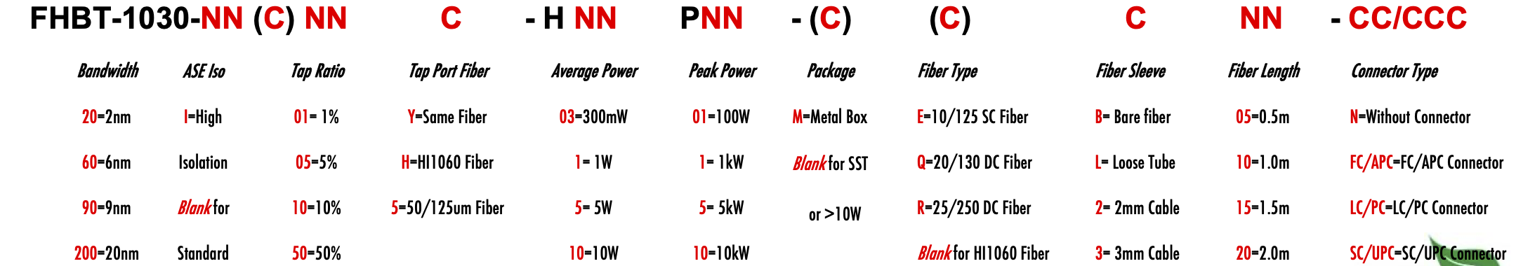 FHBT 1030nm Singlemode SM Fiber Bandpass Filter Tap coupler splitter Hybrid Bandwidth 1.3nm 2nm 2.0nm 4nm 4.0nm 6nm 6.0nm 8nm 8.0nm 10nm 10.0nm 12nm 12.0nm 13nm 13.0nm 20nm 20.0nm optical fiber bandpass filter with tap coupler or splitter hybrid device or bandstop filter Glasfaser-Bandpassfilter mit Abzweigkoppler oder Splitter-Hybridgerät oder Bandsperrfilter Filtro de paso de banda de fibra óptica con acoplador de grifo o dispositivo híbrido divisor o filtro de banda filtre passe-bande à fibre optique avec coupleur de prise ou dispositif hybride séparateur ou filtre coupe-bande optinen kuitukaistanpäästösuodatin, jossa on väliliitin tai jakajahybridilaite tai kaistanstop-suodatin filtro passa-banda de fibra óptica com acoplador de torneira ou dispositivo híbrido divisor ou filtro de parada de banda ?wiat?owodowy filtr pasmowo-przepustowy z hybrydowym urz?dzeniem sprz?gaj?cym lub rozdzielaczem lub filtrem pasmowym optisk fiber båndpassfilter med tappkopler eller splitter hybridenhet eller båndstoppfilter filtro passa banda in fibra ottica con accoppiatore di presa o dispositivo ibrido sdoppiatore o filtro elimina banda glasvezelbanddoorlaatfilter met kraankoppeling of splitter hybride apparaat of bandstopfilter pásmový filtr s optickým vláknem s odbo?ovacím vazebním ?lenem nebo rozbo?ovacím hybridním za?ízením nebo pásmovým filtrem HI1060 1060XP LMA 6/125um 10/125um 10/130um 12/125um 12/130um 15/125um 15/130um 20/125um 20/130um 25/250um 30/250um SC Single Clad Cladding DC Double Clad or large mode area fiber fibre à simple gaine ou fibre à double gaine ou fibre à grande zone de mode ingle Clad-Faser oder Double Clad-Faser oder Large-Mode-Area-Faser ibra con revestimiento simple o fibra con revestimiento doble o fibra de área modal grande fibra de revestimento simples ou fibra de revestimento duplo ou fibra de área de modo grande ibra a rivestimento singolo o fibra a doppio rivestimento o fibra a grande area modale yksikerroksinen kuitu tai kaksinkertainen kuitu tai suurimuotoinen kuitu 2-port D Type 3-port Y Type 4-port X Type Type D à 2 ports Type Y à 3 ports Type X à 4 ports -Port-D-Typ 3-Port-Y-Typ 4-Port-X-Typ Tipo D de 2 puertos Tipo Y de 3 puertos Tipo X de 4 puertos Tipo D de 2 portas Tipo Y de 3 portas Tipo X de 4 portas ipo D a 2 porte Tipo Y a 3 porte Tipo X a 4 porte 2-porttinen D-tyyppi 3-porttinen Y-tyyppi 4-porttinen X-tyyppi