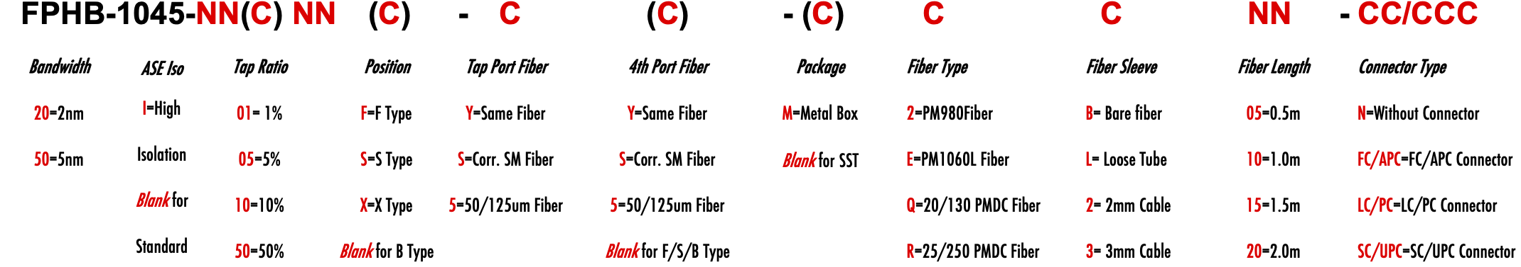 FPHB 1045nm Singlemode PM Fiber Bandpass Filter Tap coupler splitter Hybrid Bandwidth 2.0nm 5.0nm 2nm 5nm optical fiber bandpass filter with tap coupler or splitter hybrid device or bandstop filter Glasfaser-Bandpassfilter mit Abzweigkoppler oder Splitter-Hybridgerät oder Bandsperrfilter Filtro de paso de banda de fibra óptica con acoplador de grifo o dispositivo híbrido divisor o filtro de banda filtre passe-bande à fibre optique avec coupleur de prise ou dispositif hybride séparateur ou filtre coupe-bande optinen kuitukaistanpäästösuodatin, jossa on väliliitin tai jakajahybridilaite tai kaistanstop-suodatin filtro passa-banda de fibra óptica com acoplador de torneira ou dispositivo híbrido divisor ou filtro de parada de banda ?wiat?owodowy filtr pasmowo-przepustowy z hybrydowym urz?dzeniem sprz?gaj?cym lub rozdzielaczem lub filtrem pasmowym optisk fiber båndpassfilter med tappkopler eller splitter hybridenhet eller båndstoppfilter filtro passa banda in fibra ottica con accoppiatore di presa o dispositivo ibrido sdoppiatore o filtro elimina banda glasvezelbanddoorlaatfilter met kraankoppeling of splitter hybride apparaat of bandstopfilter pásmový filtr s optickým vláknem s odbo?ovacím vazebním ?lenem nebo rozbo?ovacím hybridním za?ízením nebo pásmovým filtrem PM980 PM980XP PM980HP LMA 6/125um 10/125um 10/130um 12/130um 15/125um 15/130um 20/125um 20/130um 25/250um 30/250um SC Single Clad Cladding DC Double Clad or large mode area fiber fibre à simple gaine ou fibre à double gaine ou fibre à grande zone de mode ingle Clad-Faser oder Double Clad-Faser oder Large-Mode-Area-Faser ibra con revestimiento simple o fibra con revestimiento doble o fibra de área modal grande fibra de revestimento simples ou fibra de revestimento duplo ou fibra de área de modo grande ibra a rivestimento singolo o fibra a doppio rivestimento o fibra a grande area modale yksikerroksinen kuitu tai kaksinkertainen kuitu tai suurimuotoinen kuitu 2-port D Type 3-port Y Type 4-port X Type Type D à 2 ports Type Y à 3 ports Type X à 4 ports -Port-D-Typ 3-Port-Y-Typ 4-Port-X-Typ Tipo D de 2 puertos Tipo Y de 3 puertos Tipo X de 4 puertos Tipo D de 2 portas Tipo Y de 3 portas Tipo X de 4 portas ipo D a 2 porte Tipo Y a 3 porte Tipo X a 4 porte 2-porttinen D-tyyppi 3-porttinen Y-tyyppi 4-porttinen X-tyyppi Polarization Maintaining PM Extinction Ratio ER Panda tie maintien de la polarisation fibre panda ou cravate avec taux d'extinction polarisationserhaltende Panda- oder Bindefaser mit Extinktionsverhältnis polarización manteniendo panda o fibra de amarre con relación de extinción polarização mantendo a fibra panda ou tie com taxa de extinção polarizzazione mantenendo panda o legare fibra con rapporto di estinzione olarisaatiota ylläpitävä panda- tai sidekuitu ekstinktiosuhteella