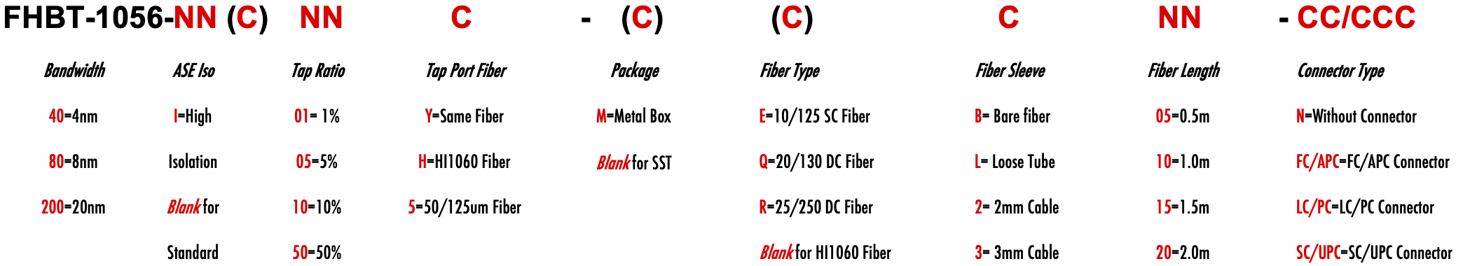 FHBT 1056nm Singlemode SM Fiber Bandpass Filter Tap coupler splitter Hybrid Bandwidth 4.0nm 8.0nm 20.0nm 4nm 8nm 20nm optical fiber bandpass filter with tap coupler or splitter hybrid device or bandstop filter Glasfaser-Bandpassfilter mit Abzweigkoppler oder Splitter-Hybridgerät oder Bandsperrfilter Filtro de paso de banda de fibra óptica con acoplador de grifo o dispositivo híbrido divisor o filtro de banda filtre passe-bande à fibre optique avec coupleur de prise ou dispositif hybride séparateur ou filtre coupe-bande optinen kuitukaistanpäästösuodatin, jossa on väliliitin tai jakajahybridilaite tai kaistanstop-suodatin filtro passa-banda de fibra óptica com acoplador de torneira ou dispositivo híbrido divisor ou filtro de parada de banda ?wiat?owodowy filtr pasmowo-przepustowy z hybrydowym urz?dzeniem sprz?gaj?cym lub rozdzielaczem lub filtrem pasmowym optisk fiber båndpassfilter med tappkopler eller splitter hybridenhet eller båndstoppfilter filtro passa banda in fibra ottica con accoppiatore di presa o dispositivo ibrido sdoppiatore o filtro elimina banda glasvezelbanddoorlaatfilter met kraankoppeling of splitter hybride apparaat of bandstopfilter pásmový filtr s optickým vláknem s odbo?ovacím vazebním ?lenem nebo rozbo?ovacím hybridním za?ízením nebo pásmovým filtrem HI1060 1060XP LMA 6/125um 10/125um 10/130um 12/125um 12/130um 15/125um 15/130um 20/125um 20/130um 25/250um 30/250um SC Single Clad Cladding DC Double Clad or large mode area fiber fibre à simple gaine ou fibre à double gaine ou fibre à grande zone de mode ingle Clad-Faser oder Double Clad-Faser oder Large-Mode-Area-Faser ibra con revestimiento simple o fibra con revestimiento doble o fibra de área modal grande fibra de revestimento simples ou fibra de revestimento duplo ou fibra de área de modo grande ibra a rivestimento singolo o fibra a doppio rivestimento o fibra a grande area modale yksikerroksinen kuitu tai kaksinkertainen kuitu tai suurimuotoinen kuitu 2-port D Type 3-port Y Type 4-port X Type Type D à 2 ports Type Y à 3 ports Type X à 4 ports -Port-D-Typ 3-Port-Y-Typ 4-Port-X-Typ Tipo D de 2 puertos Tipo Y de 3 puertos Tipo X de 4 puertos Tipo D de 2 portas Tipo Y de 3 portas Tipo X de 4 portas ipo D a 2 porte Tipo Y a 3 porte Tipo X a 4 porte 2-porttinen D-tyyppi 3-porttinen Y-tyyppi 4-porttinen X-tyyppi