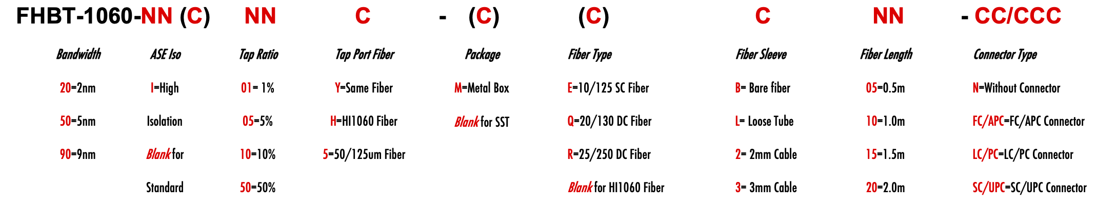 FHBT 1060nm Singlemode SM Fiber Bandpass Filter Tap coupler splitter Hybrid Bandwidth 2.0nm 5.0nm 9.0nm 2nm 5nm 9nm optical fiber bandpass filter with tap coupler or splitter hybrid device or bandstop filter Glasfaser-Bandpassfilter mit Abzweigkoppler oder Splitter-Hybridgerät oder Bandsperrfilter Filtro de paso de banda de fibra óptica con acoplador de grifo o dispositivo híbrido divisor o filtro de banda filtre passe-bande à fibre optique avec coupleur de prise ou dispositif hybride séparateur ou filtre coupe-bande optinen kuitukaistanpäästösuodatin, jossa on väliliitin tai jakajahybridilaite tai kaistanstop-suodatin filtro passa-banda de fibra óptica com acoplador de torneira ou dispositivo híbrido divisor ou filtro de parada de banda ?wiat?owodowy filtr pasmowo-przepustowy z hybrydowym urz?dzeniem sprz?gaj?cym lub rozdzielaczem lub filtrem pasmowym optisk fiber båndpassfilter med tappkopler eller splitter hybridenhet eller båndstoppfilter filtro passa banda in fibra ottica con accoppiatore di presa o dispositivo ibrido sdoppiatore o filtro elimina banda glasvezelbanddoorlaatfilter met kraankoppeling of splitter hybride apparaat of bandstopfilter pásmový filtr s optickým vláknem s odbo?ovacím vazebním ?lenem nebo rozbo?ovacím hybridním za?ízením nebo pásmovým filtrem HI1060 1060XP LMA 6/125um 10/125um 10/130um 12/125um 12/130um 15/125um 15/130um 20/125um 20/130um 25/250um 30/250um SC Single Clad Cladding DC Double Clad or large mode area fiber fibre à simple gaine ou fibre à double gaine ou fibre à grande zone de mode ingle Clad-Faser oder Double Clad-Faser oder Large-Mode-Area-Faser ibra con revestimiento simple o fibra con revestimiento doble o fibra de área modal grande fibra de revestimento simples ou fibra de revestimento duplo ou fibra de área de modo grande ibra a rivestimento singolo o fibra a doppio rivestimento o fibra a grande area modale yksikerroksinen kuitu tai kaksinkertainen kuitu tai suurimuotoinen kuitu 2-port D Type 3-port Y Type 4-port X Type Type D à 2 ports Type Y à 3 ports Type X à 4 ports -Port-D-Typ 3-Port-Y-Typ 4-Port-X-Typ Tipo D de 2 puertos Tipo Y de 3 puertos Tipo X de 4 puertos Tipo D de 2 portas Tipo Y de 3 portas Tipo X de 4 portas ipo D a 2 porte Tipo Y a 3 porte Tipo X a 4 porte 2-porttinen D-tyyppi 3-porttinen Y-tyyppi 4-porttinen X-tyyppi