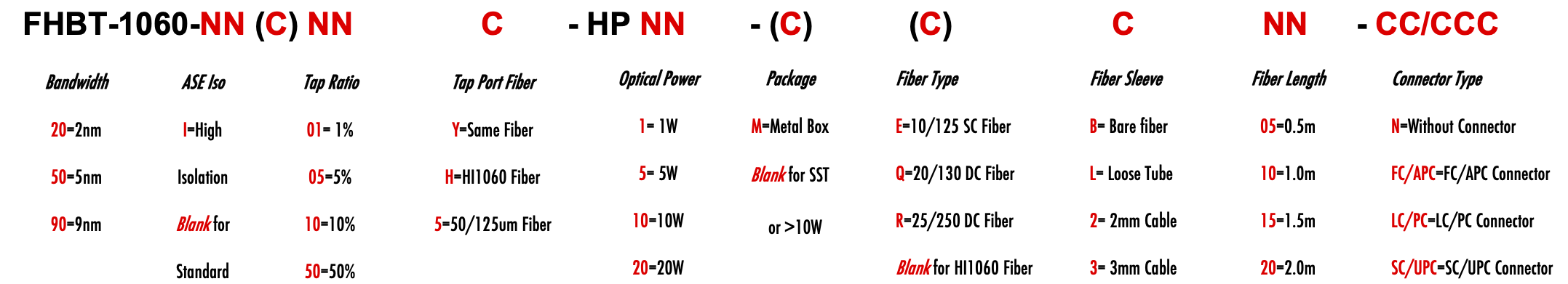 FHBT 1060nm Singlemode SM Fiber Bandpass Filter Tap coupler splitter Hybrid Bandwidth 2.0nm 5.0nm 9.0nm 2nm 5nm 9nm optical fiber bandpass filter with tap coupler or splitter hybrid device or bandstop filter Glasfaser-Bandpassfilter mit Abzweigkoppler oder Splitter-Hybridgerät oder Bandsperrfilter Filtro de paso de banda de fibra óptica con acoplador de grifo o dispositivo híbrido divisor o filtro de banda filtre passe-bande à fibre optique avec coupleur de prise ou dispositif hybride séparateur ou filtre coupe-bande optinen kuitukaistanpäästösuodatin, jossa on väliliitin tai jakajahybridilaite tai kaistanstop-suodatin filtro passa-banda de fibra óptica com acoplador de torneira ou dispositivo híbrido divisor ou filtro de parada de banda ?wiat?owodowy filtr pasmowo-przepustowy z hybrydowym urz?dzeniem sprz?gaj?cym lub rozdzielaczem lub filtrem pasmowym optisk fiber båndpassfilter med tappkopler eller splitter hybridenhet eller båndstoppfilter filtro passa banda in fibra ottica con accoppiatore di presa o dispositivo ibrido sdoppiatore o filtro elimina banda glasvezelbanddoorlaatfilter met kraankoppeling of splitter hybride apparaat of bandstopfilter pásmový filtr s optickým vláknem s odbo?ovacím vazebním ?lenem nebo rozbo?ovacím hybridním za?ízením nebo pásmovým filtrem HI1060 1060XP LMA 6/125um 10/125um 10/130um 12/125um 12/130um 15/125um 15/130um 20/125um 20/130um 25/250um 30/250um SC Single Clad Cladding DC Double Clad or large mode area fiber fibre à simple gaine ou fibre à double gaine ou fibre à grande zone de mode ingle Clad-Faser oder Double Clad-Faser oder Large-Mode-Area-Faser ibra con revestimiento simple o fibra con revestimiento doble o fibra de área modal grande fibra de revestimento simples ou fibra de revestimento duplo ou fibra de área de modo grande ibra a rivestimento singolo o fibra a doppio rivestimento o fibra a grande area modale yksikerroksinen kuitu tai kaksinkertainen kuitu tai suurimuotoinen kuitu 2-port D Type 3-port Y Type 4-port X Type Type D à 2 ports Type Y à 3 ports Type X à 4 ports -Port-D-Typ 3-Port-Y-Typ 4-Port-X-Typ Tipo D de 2 puertos Tipo Y de 3 puertos Tipo X de 4 puertos Tipo D de 2 portas Tipo Y de 3 portas Tipo X de 4 portas ipo D a 2 porte Tipo Y a 3 porte Tipo X a 4 porte 2-porttinen D-tyyppi 3-porttinen Y-tyyppi 4-porttinen X-tyyppi