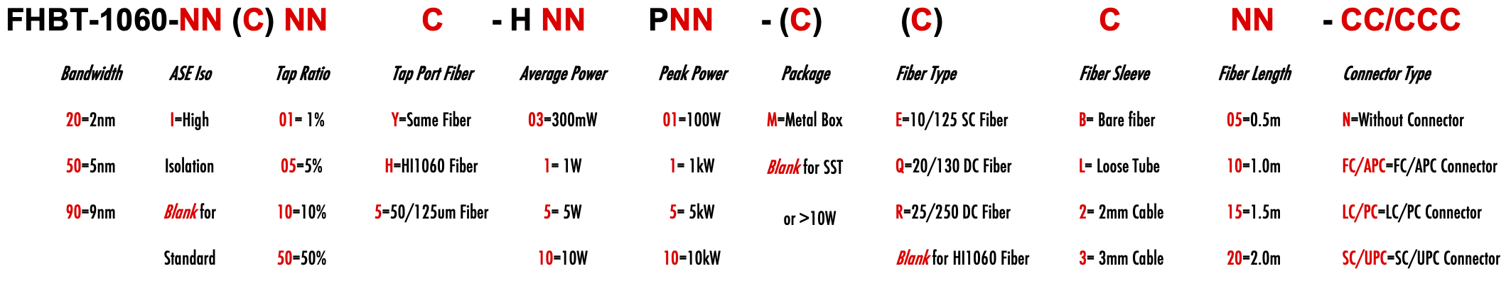 FHBT 1060nm Singlemode SM Fiber Bandpass Filter Tap coupler splitter Hybrid Bandwidth 2.0nm 5.0nm 9.0nm 2nm 5nm 9nm optical fiber bandpass filter with tap coupler or splitter hybrid device or bandstop filter Glasfaser-Bandpassfilter mit Abzweigkoppler oder Splitter-Hybridgerät oder Bandsperrfilter Filtro de paso de banda de fibra óptica con acoplador de grifo o dispositivo híbrido divisor o filtro de banda filtre passe-bande à fibre optique avec coupleur de prise ou dispositif hybride séparateur ou filtre coupe-bande optinen kuitukaistanpäästösuodatin, jossa on väliliitin tai jakajahybridilaite tai kaistanstop-suodatin filtro passa-banda de fibra óptica com acoplador de torneira ou dispositivo híbrido divisor ou filtro de parada de banda ?wiat?owodowy filtr pasmowo-przepustowy z hybrydowym urz?dzeniem sprz?gaj?cym lub rozdzielaczem lub filtrem pasmowym optisk fiber båndpassfilter med tappkopler eller splitter hybridenhet eller båndstoppfilter filtro passa banda in fibra ottica con accoppiatore di presa o dispositivo ibrido sdoppiatore o filtro elimina banda glasvezelbanddoorlaatfilter met kraankoppeling of splitter hybride apparaat of bandstopfilter pásmový filtr s optickým vláknem s odbo?ovacím vazebním ?lenem nebo rozbo?ovacím hybridním za?ízením nebo pásmovým filtrem HI1060 1060XP LMA 6/125um 10/125um 10/130um 12/125um 12/130um 15/125um 15/130um 20/125um 20/130um 25/250um 30/250um SC Single Clad Cladding DC Double Clad or large mode area fiber fibre à simple gaine ou fibre à double gaine ou fibre à grande zone de mode ingle Clad-Faser oder Double Clad-Faser oder Large-Mode-Area-Faser ibra con revestimiento simple o fibra con revestimiento doble o fibra de área modal grande fibra de revestimento simples ou fibra de revestimento duplo ou fibra de área de modo grande ibra a rivestimento singolo o fibra a doppio rivestimento o fibra a grande area modale yksikerroksinen kuitu tai kaksinkertainen kuitu tai suurimuotoinen kuitu 2-port D Type 3-port Y Type 4-port X Type Type D à 2 ports Type Y à 3 ports Type X à 4 ports -Port-D-Typ 3-Port-Y-Typ 4-Port-X-Typ Tipo D de 2 puertos Tipo Y de 3 puertos Tipo X de 4 puertos Tipo D de 2 portas Tipo Y de 3 portas Tipo X de 4 portas ipo D a 2 porte Tipo Y a 3 porte Tipo X a 4 porte 2-porttinen D-tyyppi 3-porttinen Y-tyyppi 4-porttinen X-tyyppi