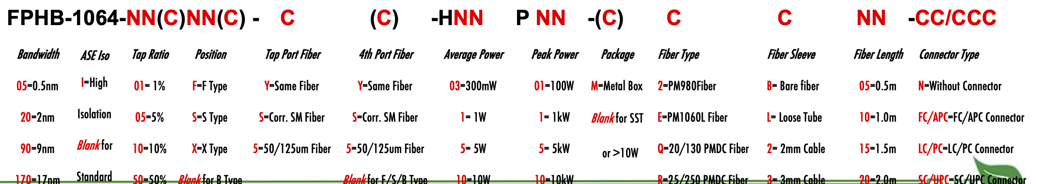 FPHB 1064nm Singlemode PM Fiber Bandpass Filter Tap coupler splitter Hybrid Bandwidth 0.5nm 2.0nm 5.0nm 6.0nm 9.0nm 17.0nm 2nm 5nm 6nm 9nm 17nm 8nm 8.0nm optical fiber bandpass filter with tap coupler or splitter hybrid device or bandstop filter Glasfaser-Bandpassfilter mit Abzweigkoppler oder Splitter-Hybridgerät oder Bandsperrfilter Filtro de paso de banda de fibra óptica con acoplador de grifo o dispositivo híbrido divisor o filtro de banda filtre passe-bande à fibre optique avec coupleur de prise ou dispositif hybride séparateur ou filtre coupe-bande optinen kuitukaistanpäästösuodatin, jossa on väliliitin tai jakajahybridilaite tai kaistanstop-suodatin filtro passa-banda de fibra óptica com acoplador de torneira ou dispositivo híbrido divisor ou filtro de parada de banda ?wiat?owodowy filtr pasmowo-przepustowy z hybrydowym urz?dzeniem sprz?gaj?cym lub rozdzielaczem lub filtrem pasmowym optisk fiber båndpassfilter med tappkopler eller splitter hybridenhet eller båndstoppfilter filtro passa banda in fibra ottica con accoppiatore di presa o dispositivo ibrido sdoppiatore o filtro elimina banda glasvezelbanddoorlaatfilter met kraankoppeling of splitter hybride apparaat of bandstopfilter pásmový filtr s optickým vláknem s odbo?ovacím vazebním ?lenem nebo rozbo?ovacím hybridním za?ízením nebo pásmovým filtrem PM980 PM980XP PM980HP LMA 6/125um 10/125um 10/130um 12/130um 15/125um 15/130um 20/125um 20/130um 25/250um 30/250um SC Single Clad Cladding DC Double Clad or large mode area fiber fibre à simple gaine ou fibre à double gaine ou fibre à grande zone de mode ingle Clad-Faser oder Double Clad-Faser oder Large-Mode-Area-Faser ibra con revestimiento simple o fibra con revestimiento doble o fibra de área modal grande fibra de revestimento simples ou fibra de revestimento duplo ou fibra de área de modo grande ibra a rivestimento singolo o fibra a doppio rivestimento o fibra a grande area modale yksikerroksinen kuitu tai kaksinkertainen kuitu tai suurimuotoinen kuitu 2-port D Type 3-port Y Type 4-port X Type Type D à 2 ports Type Y à 3 ports Type X à 4 ports -Port-D-Typ 3-Port-Y-Typ 4-Port-X-Typ Tipo D de 2 puertos Tipo Y de 3 puertos Tipo X de 4 puertos Tipo D de 2 portas Tipo Y de 3 portas Tipo X de 4 portas ipo D a 2 porte Tipo Y a 3 porte Tipo X a 4 porte 2-porttinen D-tyyppi 3-porttinen Y-tyyppi 4-porttinen X-tyyppi Polarization Maintaining PM Extinction Ratio ER Panda tie maintien de la polarisation fibre panda ou cravate avec taux d'extinction polarisationserhaltende Panda- oder Bindefaser mit Extinktionsverhältnis polarización manteniendo panda o fibra de amarre con relación de extinción polarização mantendo a fibra panda ou tie com taxa de extinção polarizzazione mantenendo panda o legare fibra con rapporto di estinzione olarisaatiota ylläpitävä panda- tai sidekuitu ekstinktiosuhteella