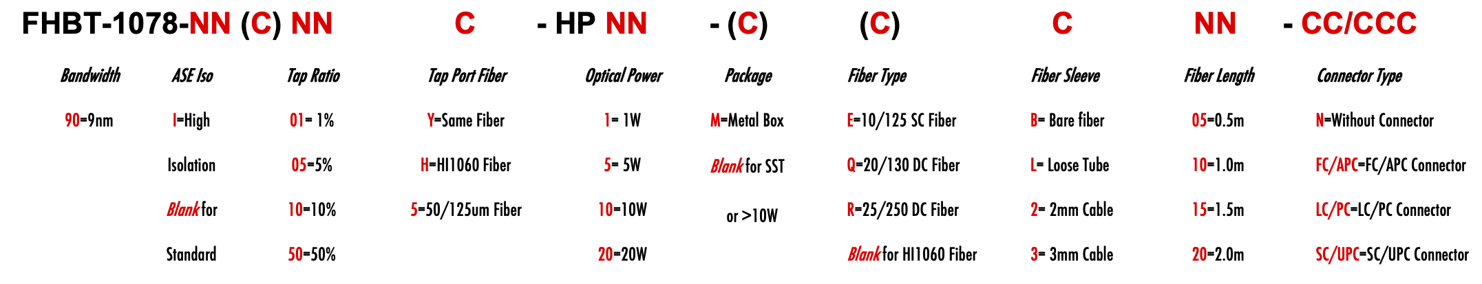 FHBT 1078nm Singlemode SM Fiber Bandpass Filter Tap coupler splitter Hybrid Bandwidth 9.0nm 9nm optical fiber bandpass filter with tap coupler or splitter hybrid device or bandstop filter Glasfaser-Bandpassfilter mit Abzweigkoppler oder Splitter-Hybridgerät oder Bandsperrfilter Filtro de paso de banda de fibra óptica con acoplador de grifo o dispositivo híbrido divisor o filtro de banda filtre passe-bande à fibre optique avec coupleur de prise ou dispositif hybride séparateur ou filtre coupe-bande optinen kuitukaistanpäästösuodatin, jossa on väliliitin tai jakajahybridilaite tai kaistanstop-suodatin filtro passa-banda de fibra óptica com acoplador de torneira ou dispositivo híbrido divisor ou filtro de parada de banda ?wiat?owodowy filtr pasmowo-przepustowy z hybrydowym urz?dzeniem sprz?gaj?cym lub rozdzielaczem lub filtrem pasmowym optisk fiber båndpassfilter med tappkopler eller splitter hybridenhet eller båndstoppfilter filtro passa banda in fibra ottica con accoppiatore di presa o dispositivo ibrido sdoppiatore o filtro elimina banda glasvezelbanddoorlaatfilter met kraankoppeling of splitter hybride apparaat of bandstopfilter pásmový filtr s optickým vláknem s odbo?ovacím vazebním ?lenem nebo rozbo?ovacím hybridním za?ízením nebo pásmovým filtrem HI1060 1060XP LMA 6/125um 10/125um 10/130um 12/125um 12/130um 15/125um 15/130um 20/125um 20/130um 25/250um 30/250um SC Single Clad Cladding DC Double Clad or large mode area fiber fibre à simple gaine ou fibre à double gaine ou fibre à grande zone de mode ingle Clad-Faser oder Double Clad-Faser oder Large-Mode-Area-Faser ibra con revestimiento simple o fibra con revestimiento doble o fibra de área modal grande fibra de revestimento simples ou fibra de revestimento duplo ou fibra de área de modo grande ibra a rivestimento singolo o fibra a doppio rivestimento o fibra a grande area modale yksikerroksinen kuitu tai kaksinkertainen kuitu tai suurimuotoinen kuitu 2-port D Type 3-port Y Type 4-port X Type Type D à 2 ports Type Y à 3 ports Type X à 4 ports -Port-D-Typ 3-Port-Y-Typ 4-Port-X-Typ Tipo D de 2 puertos Tipo Y de 3 puertos Tipo X de 4 puertos Tipo D de 2 portas Tipo Y de 3 portas Tipo X de 4 portas ipo D a 2 porte Tipo Y a 3 porte Tipo X a 4 porte 2-porttinen D-tyyppi 3-porttinen Y-tyyppi 4-porttinen X-tyyppi