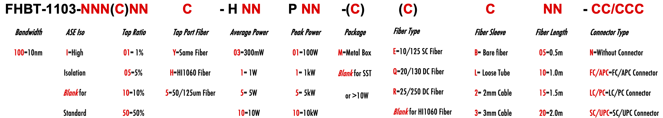 FHBT 1103nm Singlemode SM Fiber Bandpass Filter Tap coupler splitter Hybrid Bandwidth 10nm 10.0nm optical fiber bandpass filter with tap coupler or splitter hybrid device or bandstop filter Glasfaser-Bandpassfilter mit Abzweigkoppler oder Splitter-Hybridgerät oder Bandsperrfilter Filtro de paso de banda de fibra óptica con acoplador de grifo o dispositivo híbrido divisor o filtro de banda filtre passe-bande à fibre optique avec coupleur de prise ou dispositif hybride séparateur ou filtre coupe-bande optinen kuitukaistanpäästösuodatin, jossa on väliliitin tai jakajahybridilaite tai kaistanstop-suodatin filtro passa-banda de fibra óptica com acoplador de torneira ou dispositivo híbrido divisor ou filtro de parada de banda ?wiat?owodowy filtr pasmowo-przepustowy z hybrydowym urz?dzeniem sprz?gaj?cym lub rozdzielaczem lub filtrem pasmowym optisk fiber båndpassfilter med tappkopler eller splitter hybridenhet eller båndstoppfilter filtro passa banda in fibra ottica con accoppiatore di presa o dispositivo ibrido sdoppiatore o filtro elimina banda glasvezelbanddoorlaatfilter met kraankoppeling of splitter hybride apparaat of bandstopfilter pásmový filtr s optickým vláknem s odbo?ovacím vazebním ?lenem nebo rozbo?ovacím hybridním za?ízením nebo pásmovým filtrem HI1060 1060XP LMA 6/125um 10/125um 10/130um 12/125um 12/130um 15/125um 15/130um 20/125um 20/130um 25/250um 30/250um SC Single Clad Cladding DC Double Clad or large mode area fiber fibre à simple gaine ou fibre à double gaine ou fibre à grande zone de mode ingle Clad-Faser oder Double Clad-Faser oder Large-Mode-Area-Faser ibra con revestimiento simple o fibra con revestimiento doble o fibra de área modal grande fibra de revestimento simples ou fibra de revestimento duplo ou fibra de área de modo grande ibra a rivestimento singolo o fibra a doppio rivestimento o fibra a grande area modale yksikerroksinen kuitu tai kaksinkertainen kuitu tai suurimuotoinen kuitu 2-port D Type 3-port Y Type 4-port X Type Type D à 2 ports Type Y à 3 ports Type X à 4 ports -Port-D-Typ 3-Port-Y-Typ 4-Port-X-Typ Tipo D de 2 puertos Tipo Y de 3 puertos Tipo X de 4 puertos Tipo D de 2 portas Tipo Y de 3 portas Tipo X de 4 portas ipo D a 2 porte Tipo Y a 3 porte Tipo X a 4 porte 2-porttinen D-tyyppi 3-porttinen Y-tyyppi 4-porttinen X-tyyppi