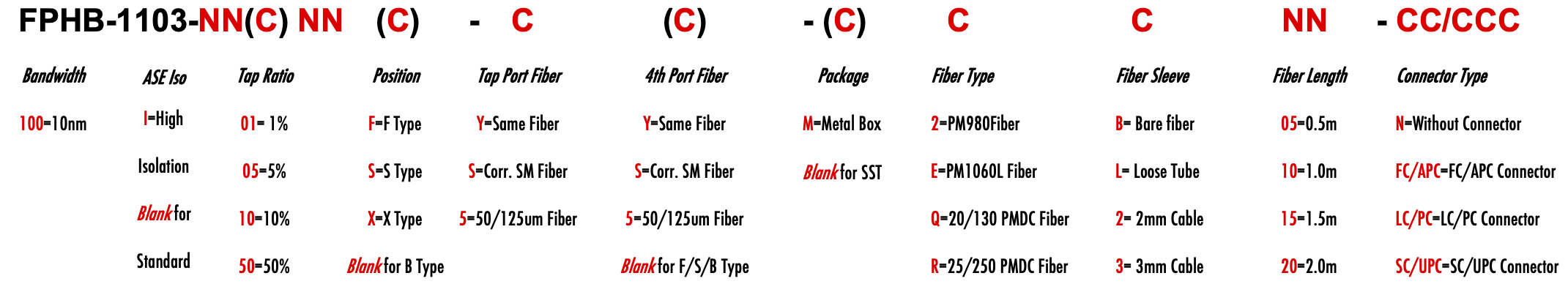 FPHB 1103nm Singlemode PM Fiber Bandpass Filter Tap coupler splitter Hybrid Bandwidth 10nm 10.0nm optical fiber bandpass filter with tap coupler or splitter hybrid device or bandstop filter Glasfaser-Bandpassfilter mit Abzweigkoppler oder Splitter-Hybridgerät oder Bandsperrfilter Filtro de paso de banda de fibra óptica con acoplador de grifo o dispositivo híbrido divisor o filtro de banda filtre passe-bande à fibre optique avec coupleur de prise ou dispositif hybride séparateur ou filtre coupe-bande optinen kuitukaistanpäästösuodatin, jossa on väliliitin tai jakajahybridilaite tai kaistanstop-suodatin filtro passa-banda de fibra óptica com acoplador de torneira ou dispositivo híbrido divisor ou filtro de parada de banda ?wiat?owodowy filtr pasmowo-przepustowy z hybrydowym urz?dzeniem sprz?gaj?cym lub rozdzielaczem lub filtrem pasmowym optisk fiber båndpassfilter med tappkopler eller splitter hybridenhet eller båndstoppfilter filtro passa banda in fibra ottica con accoppiatore di presa o dispositivo ibrido sdoppiatore o filtro elimina banda glasvezelbanddoorlaatfilter met kraankoppeling of splitter hybride apparaat of bandstopfilter pásmový filtr s optickým vláknem s odbo?ovacím vazebním ?lenem nebo rozbo?ovacím hybridním za?ízením nebo pásmovým filtrem PM980 PM980XP PM980HP LMA 6/125um 10/125um 10/130um 12/130um 15/125um 15/130um 20/125um 20/130um 25/250um 30/250um SC Single Clad Cladding DC Double Clad or large mode area fiber fibre à simple gaine ou fibre à double gaine ou fibre à grande zone de mode ingle Clad-Faser oder Double Clad-Faser oder Large-Mode-Area-Faser ibra con revestimiento simple o fibra con revestimiento doble o fibra de área modal grande fibra de revestimento simples ou fibra de revestimento duplo ou fibra de área de modo grande ibra a rivestimento singolo o fibra a doppio rivestimento o fibra a grande area modale yksikerroksinen kuitu tai kaksinkertainen kuitu tai suurimuotoinen kuitu 2-port D Type 3-port Y Type 4-port X Type Type D à 2 ports Type Y à 3 ports Type X à 4 ports -Port-D-Typ 3-Port-Y-Typ 4-Port-X-Typ Tipo D de 2 puertos Tipo Y de 3 puertos Tipo X de 4 puertos Tipo D de 2 portas Tipo Y de 3 portas Tipo X de 4 portas ipo D a 2 porte Tipo Y a 3 porte Tipo X a 4 porte 2-porttinen D-tyyppi 3-porttinen Y-tyyppi 4-porttinen X-tyyppi Polarization Maintaining PM Extinction Ratio ER Panda tie maintien de la polarisation fibre panda ou cravate avec taux d'extinction polarisationserhaltende Panda- oder Bindefaser mit Extinktionsverhältnis polarización manteniendo panda o fibra de amarre con relación de extinción polarização mantendo a fibra panda ou tie com taxa de extinção polarizzazione mantenendo panda o legare fibra con rapporto di estinzione olarisaatiota ylläpitävä panda- tai sidekuitu ekstinktiosuhteella