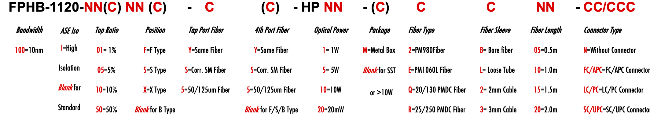 FPHB 1120nm Singlemode PM Fiber Bandpass Filter Tap coupler splitter Hybrid Bandwidth 10.0nm 10nm optical fiber bandpass filter with tap coupler or splitter hybrid device or bandstop filter Glasfaser-Bandpassfilter mit Abzweigkoppler oder Splitter-Hybridgerät oder Bandsperrfilter Filtro de paso de banda de fibra óptica con acoplador de grifo o dispositivo híbrido divisor o filtro de banda filtre passe-bande à fibre optique avec coupleur de prise ou dispositif hybride séparateur ou filtre coupe-bande optinen kuitukaistanpäästösuodatin, jossa on väliliitin tai jakajahybridilaite tai kaistanstop-suodatin filtro passa-banda de fibra óptica com acoplador de torneira ou dispositivo híbrido divisor ou filtro de parada de banda ?wiat?owodowy filtr pasmowo-przepustowy z hybrydowym urz?dzeniem sprz?gaj?cym lub rozdzielaczem lub filtrem pasmowym optisk fiber båndpassfilter med tappkopler eller splitter hybridenhet eller båndstoppfilter filtro passa banda in fibra ottica con accoppiatore di presa o dispositivo ibrido sdoppiatore o filtro elimina banda glasvezelbanddoorlaatfilter met kraankoppeling of splitter hybride apparaat of bandstopfilter pásmový filtr s optickým vláknem s odbo?ovacím vazebním ?lenem nebo rozbo?ovacím hybridním za?ízením nebo pásmovým filtrem PM980 PM980XP PM980HP LMA 6/125um 10/125um 10/130um 12/130um 15/125um 15/130um 20/125um 20/130um 25/250um 30/250um SC Single Clad Cladding DC Double Clad or large mode area fiber fibre à simple gaine ou fibre à double gaine ou fibre à grande zone de mode ingle Clad-Faser oder Double Clad-Faser oder Large-Mode-Area-Faser ibra con revestimiento simple o fibra con revestimiento doble o fibra de área modal grande fibra de revestimento simples ou fibra de revestimento duplo ou fibra de área de modo grande ibra a rivestimento singolo o fibra a doppio rivestimento o fibra a grande area modale yksikerroksinen kuitu tai kaksinkertainen kuitu tai suurimuotoinen kuitu 2-port D Type 3-port Y Type 4-port X Type Type D à 2 ports Type Y à 3 ports Type X à 4 ports -Port-D-Typ 3-Port-Y-Typ 4-Port-X-Typ Tipo D de 2 puertos Tipo Y de 3 puertos Tipo X de 4 puertos Tipo D de 2 portas Tipo Y de 3 portas Tipo X de 4 portas ipo D a 2 porte Tipo Y a 3 porte Tipo X a 4 porte 2-porttinen D-tyyppi 3-porttinen Y-tyyppi 4-porttinen X-tyyppi Polarization Maintaining PM Extinction Ratio ER Panda tie maintien de la polarisation fibre panda ou cravate avec taux d'extinction polarisationserhaltende Panda- oder Bindefaser mit Extinktionsverhältnis polarización manteniendo panda o fibra de amarre con relación de extinción polarização mantendo a fibra panda ou tie com taxa de extinção polarizzazione mantenendo panda o legare fibra con rapporto di estinzione olarisaatiota ylläpitävä panda- tai sidekuitu ekstinktiosuhteella