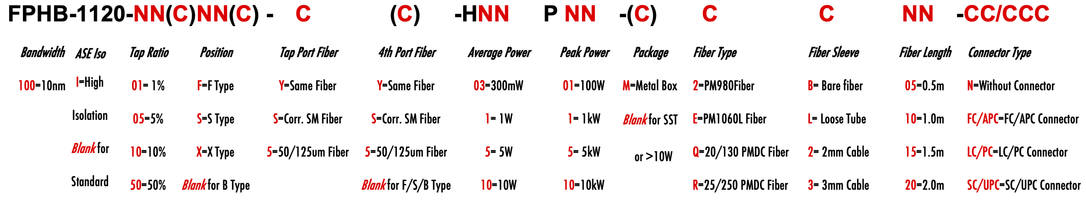 FPHB 1120nm Singlemode PM Fiber Bandpass Filter Tap coupler splitter Hybrid Bandwidth 10.0nm 10nm optical fiber bandpass filter with tap coupler or splitter hybrid device or bandstop filter Glasfaser-Bandpassfilter mit Abzweigkoppler oder Splitter-Hybridgerät oder Bandsperrfilter Filtro de paso de banda de fibra óptica con acoplador de grifo o dispositivo híbrido divisor o filtro de banda filtre passe-bande à fibre optique avec coupleur de prise ou dispositif hybride séparateur ou filtre coupe-bande optinen kuitukaistanpäästösuodatin, jossa on väliliitin tai jakajahybridilaite tai kaistanstop-suodatin filtro passa-banda de fibra óptica com acoplador de torneira ou dispositivo híbrido divisor ou filtro de parada de banda ?wiat?owodowy filtr pasmowo-przepustowy z hybrydowym urz?dzeniem sprz?gaj?cym lub rozdzielaczem lub filtrem pasmowym optisk fiber båndpassfilter med tappkopler eller splitter hybridenhet eller båndstoppfilter filtro passa banda in fibra ottica con accoppiatore di presa o dispositivo ibrido sdoppiatore o filtro elimina banda glasvezelbanddoorlaatfilter met kraankoppeling of splitter hybride apparaat of bandstopfilter pásmový filtr s optickým vláknem s odbo?ovacím vazebním ?lenem nebo rozbo?ovacím hybridním za?ízením nebo pásmovým filtrem PM980 PM980XP PM980HP LMA 6/125um 10/125um 10/130um 12/130um 15/125um 15/130um 20/125um 20/130um 25/250um 30/250um SC Single Clad Cladding DC Double Clad or large mode area fiber fibre à simple gaine ou fibre à double gaine ou fibre à grande zone de mode ingle Clad-Faser oder Double Clad-Faser oder Large-Mode-Area-Faser ibra con revestimiento simple o fibra con revestimiento doble o fibra de área modal grande fibra de revestimento simples ou fibra de revestimento duplo ou fibra de área de modo grande ibra a rivestimento singolo o fibra a doppio rivestimento o fibra a grande area modale yksikerroksinen kuitu tai kaksinkertainen kuitu tai suurimuotoinen kuitu 2-port D Type 3-port Y Type 4-port X Type Type D à 2 ports Type Y à 3 ports Type X à 4 ports -Port-D-Typ 3-Port-Y-Typ 4-Port-X-Typ Tipo D de 2 puertos Tipo Y de 3 puertos Tipo X de 4 puertos Tipo D de 2 portas Tipo Y de 3 portas Tipo X de 4 portas ipo D a 2 porte Tipo Y a 3 porte Tipo X a 4 porte 2-porttinen D-tyyppi 3-porttinen Y-tyyppi 4-porttinen X-tyyppi Polarization Maintaining PM Extinction Ratio ER Panda tie maintien de la polarisation fibre panda ou cravate avec taux d'extinction polarisationserhaltende Panda- oder Bindefaser mit Extinktionsverhältnis polarización manteniendo panda o fibra de amarre con relación de extinción polarização mantendo a fibra panda ou tie com taxa de extinção polarizzazione mantenendo panda o legare fibra con rapporto di estinzione olarisaatiota ylläpitävä panda- tai sidekuitu ekstinktiosuhteella