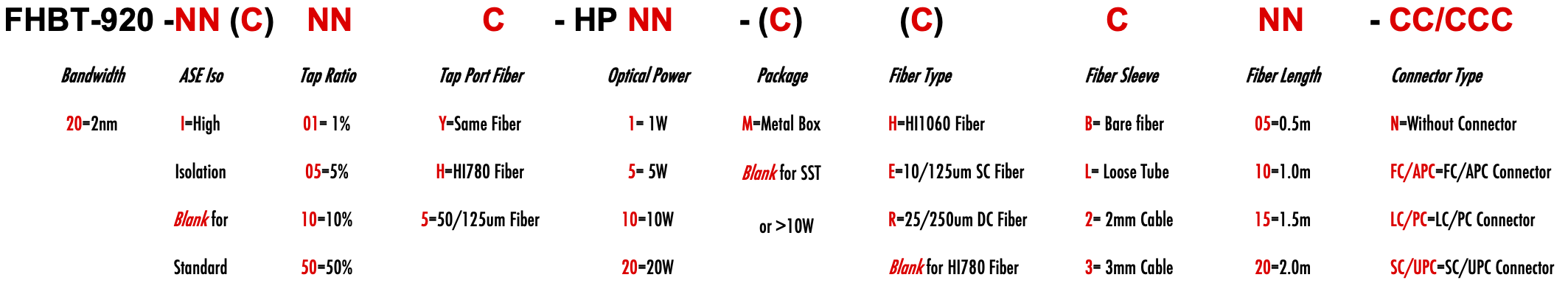 FHBT 920nm Singlemode SM Fiber Bandpass Filter Tap coupler splitter Hybrid Bandwidth 2nm 2.0nm optical fiber bandpass filter with tap coupler or splitter hybrid device or bandstop filter Glasfaser-Bandpassfilter mit Abzweigkoppler oder Splitter-Hybridgerät oder Bandsperrfilter Filtro de paso de banda de fibra óptica con acoplador de grifo o dispositivo híbrido divisor o filtro de banda filtre passe-bande à fibre optique avec coupleur de prise ou dispositif hybride séparateur ou filtre coupe-bande optinen kuitukaistanpäästösuodatin, jossa on väliliitin tai jakajahybridilaite tai kaistanstop-suodatin filtro passa-banda de fibra óptica com acoplador de torneira ou dispositivo híbrido divisor ou filtro de parada de banda ?wiat?owodowy filtr pasmowo-przepustowy z hybrydowym urz?dzeniem sprz?gaj?cym lub rozdzielaczem lub filtrem pasmowym optisk fiber båndpassfilter med tappkopler eller splitter hybridenhet eller båndstoppfilter filtro passa banda in fibra ottica con accoppiatore di presa o dispositivo ibrido sdoppiatore o filtro elimina banda glasvezelbanddoorlaatfilter met kraankoppeling of splitter hybride apparaat of bandstopfilter pásmový filtr s optickým vláknem s odbo?ovacím vazebním ?lenem nebo rozbo?ovacím hybridním za?ízením nebo pásmovým filtrem HI1060 1060XP LMA 6/125um 10/125um 10/130um 12/125um 12/130um 15/125um 15/130um 20/125um 20/130um 25/250um 30/250um SC Single Clad Cladding DC Double Clad or large mode area fiber fibre à simple gaine ou fibre à double gaine ou fibre à grande zone de mode ingle Clad-Faser oder Double Clad-Faser oder Large-Mode-Area-Faser ibra con revestimiento simple o fibra con revestimiento doble o fibra de área modal grande fibra de revestimento simples ou fibra de revestimento duplo ou fibra de área de modo grande ibra a rivestimento singolo o fibra a doppio rivestimento o fibra a grande area modale yksikerroksinen kuitu tai kaksinkertainen kuitu tai suurimuotoinen kuitu 2-port D Type 3-port Y Type 4-port X Type Type D à 2 ports Type Y à 3 ports Type X à 4 ports -Port-D-Typ 3-Port-Y-Typ 4-Port-X-Typ Tipo D de 2 puertos Tipo Y de 3 puertos Tipo X de 4 puertos Tipo D de 2 portas Tipo Y de 3 portas Tipo X de 4 portas ipo D a 2 porte Tipo Y a 3 porte Tipo X a 4 porte 2-porttinen D-tyyppi 3-porttinen Y-tyyppi 4-porttinen X-tyyppi