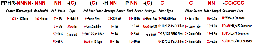 FPHR 1626nm PM Bandpass Filter BP Partial Fiber Mirror PFM Hybrid filtre filtrar SM Singlemode HYB HYBR HY HB hybride híbrido paso de banda bande passante Bandwidth 16nm PM1550 LMA 8/125um 10/125um 10/130um 12/130um 20/125um 20/130um 25/250um 25/300um 30/250um PMSC Single Clad Cladding PMDC Double Clad 2-port D Type 3-port Y Type 4-port X Type Polarization Maintaining PM Extinction Ratio ER Panda