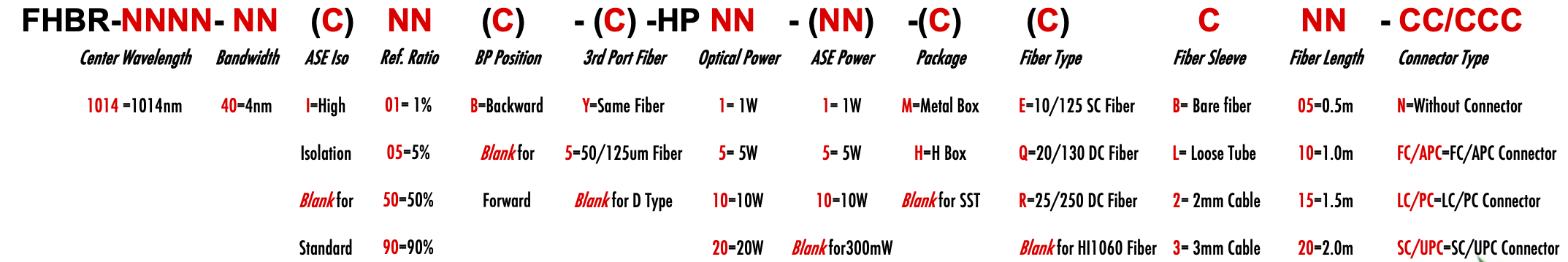 FHBR 1014nm Singlemode SM Fiber Bandpass Filter partial reflective fiber mirror tap coupler splitter Hybrid Bandwidth 4.0nm 4nm optical fiber bandpass filter with partial reflective fiber mirror or tap coupler or splitter hybrid device or bandstop filter filtre passe-bande à fibre optique avec miroir à fibre à réflexion partielle ou coupleur de prise ou dispositif hybride séparateur ou filtre coupe-bande Bandpassfilter aus optischen Fasern mit teilweise reflektierendem Faserspiegel oder Abzweigkoppler oder Splitter-Hybridgerät oder Bandsperrfilter filtro passa banda in fibra ottica con specchio in fibra riflettente parziale o accoppiatore a presa o dispositivo ibrido sdoppiatore o filtro elimina banda filtro passa-banda de fibra óptica com espelho de fibra reflexiva parcial ou acoplador de torneira ou dispositivo híbrido divisor ou filtro de parada de banda Filtro de paso de banda de fibra óptica con espejo de fibra reflectante parcial o acoplador de grifo o dispositivo híbrido divisor o filtro de parada de banda optinen kuitukaistanpäästösuodatin osittain heijastavalla kuitupeilillä tai hanan liittimellä tai jakajahybridilaitteella tai kaistanstop-suodattimella glasvezelbanddoorlaatfilter met gedeeltelijk reflecterende vezelspiegel of kraankoppeling of splitter hybride apparaat of bandstopfilter pásmový filtr s optickým vláknem s ?áste?ným reflexním vláknovým zrcadlem nebo odbo?ovací spojkou nebo rozbo?ovacím hybridním za?ízením nebo pásmovým filtrem ?wiat?owodowy filtr pasmowo-przepustowy z cz??ciowo odblaskowym lustrem ?wiat?owodowym lub hybrydowe urz?dzenie sprz?gaj?ce lub rozdzielaj?ce lub filtr pasmowy optisk fiber båndpassfilter med delvis reflekterende fiberspeil eller tappkobling eller splitter hybrid enhet eller båndstoppfilter HI1060 1060XP LMA 6/125um 10/125um 10/130um 12/125um 12/130um 15/125um 15/130um 20/125um 20/130um 25/250um 30/250um SC Single Clad Cladding DC Double Clad or large mode area fiber fibre à simple gaine ou fibre à double gaine ou fibre à grande zone de mode ingle Clad-Faser oder Double Clad-Faser oder Large-Mode-Area-Faser ibra con revestimiento simple o fibra con revestimiento doble o fibra de área modal grande fibra de revestimento simples ou fibra de revestimento duplo ou fibra de área de modo grande ibra a rivestimento singolo o fibra a doppio rivestimento o fibra a grande area modale yksikerroksinen kuitu tai kaksinkertainen kuitu tai suurimuotoinen kuitu 2-port D Type 3-port Y Type 4-port X Type Type D à 2 ports Type Y à 3 ports Type X à 4 ports -Port-D-Typ 3-Port-Y-Typ 4-Port-X-Typ Tipo D de 2 puertos Tipo Y de 3 puertos Tipo X de 4 puertos Tipo D de 2 portas Tipo Y de 3 portas Tipo X de 4 portas ipo D a 2 porte Tipo Y a 3 porte Tipo X a 4 porte 2-porttinen D-tyyppi 3-porttinen Y-tyyppi 4-porttinen X-tyyppi