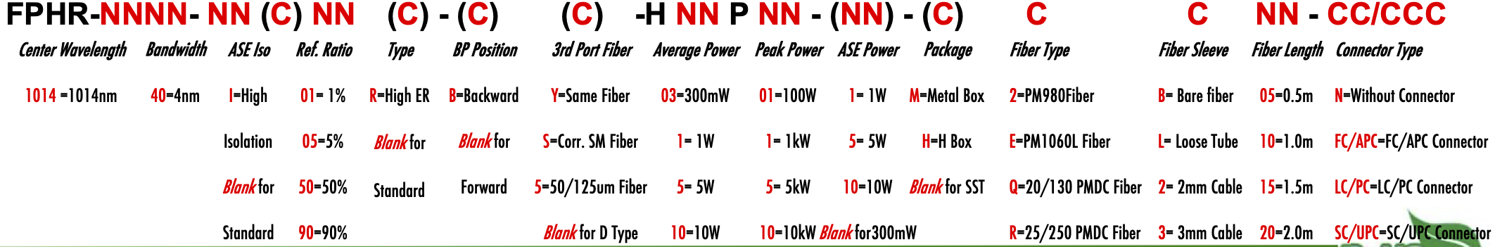 FPHR 1014nm Singlemode PM Fiber Bandpass Filter Tap coupler splitter Hybrid Bandwidth 4.0nm 4nm optical fiber bandpass filter with partial reflective fiber mirror or tap coupler or splitter hybrid device or bandstop filter filtre passe-bande à fibre optique avec miroir à fibre à réflexion partielle ou coupleur de prise ou dispositif hybride séparateur ou filtre coupe-bande Bandpassfilter aus optischen Fasern mit teilweise reflektierendem Faserspiegel oder Abzweigkoppler oder Splitter-Hybridgerät oder Bandsperrfilter filtro passa banda in fibra ottica con specchio in fibra riflettente parziale o accoppiatore a presa o dispositivo ibrido sdoppiatore o filtro elimina banda filtro passa-banda de fibra óptica com espelho de fibra reflexiva parcial ou acoplador de torneira ou dispositivo híbrido divisor ou filtro de parada de banda Filtro de paso de banda de fibra óptica con espejo de fibra reflectante parcial o acoplador de grifo o dispositivo híbrido divisor o filtro de parada de banda optinen kuitukaistanpäästösuodatin osittain heijastavalla kuitupeilillä tai hanan liittimellä tai jakajahybridilaitteella tai kaistanstop-suodattimella glasvezelbanddoorlaatfilter met gedeeltelijk reflecterende vezelspiegel of kraankoppeling of splitter hybride apparaat of bandstopfilter pásmový filtr s optickým vláknem s ?áste?ným reflexním vláknovým zrcadlem nebo odbo?ovací spojkou nebo rozbo?ovacím hybridním za?ízením nebo pásmovým filtrem ?wiat?owodowy filtr pasmowo-przepustowy z cz??ciowo odblaskowym lustrem ?wiat?owodowym lub hybrydowe urz?dzenie sprz?gaj?ce lub rozdzielaj?ce lub filtr pasmowy optisk fiber båndpassfilter med delvis reflekterende fiberspeil eller tappkobling eller splitter hybrid enhet eller båndstoppfilter PM980 PM980XP PM980HP LMA 6/125um 10/125um 10/130um 12/130um 15/125um 15/130um 20/125um 20/130um 25/250um 30/250um SC Single Clad Cladding DC Double Clad or large mode area fiber fibre à simple gaine ou fibre à double gaine ou fibre à grande zone de mode ingle Clad-Faser oder Double Clad-Faser oder Large-Mode-Area-Faser ibra con revestimiento simple o fibra con revestimiento doble o fibra de área modal grande fibra de revestimento simples ou fibra de revestimento duplo ou fibra de área de modo grande ibra a rivestimento singolo o fibra a doppio rivestimento o fibra a grande area modale yksikerroksinen kuitu tai kaksinkertainen kuitu tai suurimuotoinen kuitu 2-port D Type 3-port Y Type 4-port X Type Type D à 2 ports Type Y à 3 ports Type X à 4 ports -Port-D-Typ 3-Port-Y-Typ 4-Port-X-Typ Tipo D de 2 puertos Tipo Y de 3 puertos Tipo X de 4 puertos Tipo D de 2 portas Tipo Y de 3 portas Tipo X de 4 portas ipo D a 2 porte Tipo Y a 3 porte Tipo X a 4 porte 2-porttinen D-tyyppi 3-porttinen Y-tyyppi 4-porttinen X-tyyppi Polarization Maintaining PM Extinction Ratio ER Panda tie maintien de la polarisation fibre panda ou cravate avec taux d'extinction polarisationserhaltende Panda- oder Bindefaser mit Extinktionsverhältnis polarización manteniendo panda o fibra de amarre con relación de extinción polarização mantendo a fibra panda ou tie com taxa de extinção polarizzazione mantenendo panda o legare fibra con rapporto di estinzione olarisaatiota ylläpitävä panda- tai sidekuitu ekstinktiosuhteella