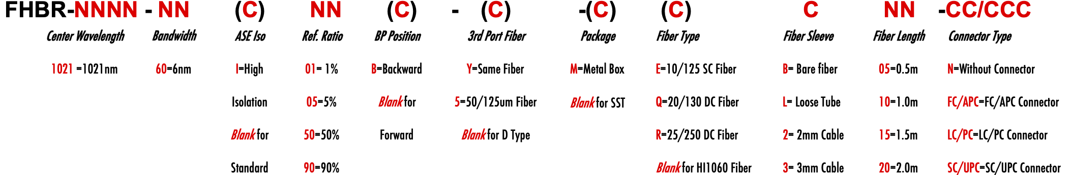 FHBR 1021nm Singlemode SM Fiber Bandpass Filter partial reflective fiber mirror tap coupler splitter Hybrid Bandwidth 6nm 6.0nm optical fiber bandpass filter with partial reflective fiber mirror or tap coupler or splitter hybrid device or bandstop filter filtre passe-bande à fibre optique avec miroir à fibre à réflexion partielle ou coupleur de prise ou dispositif hybride séparateur ou filtre coupe-bande Bandpassfilter aus optischen Fasern mit teilweise reflektierendem Faserspiegel oder Abzweigkoppler oder Splitter-Hybridgerät oder Bandsperrfilter filtro passa banda in fibra ottica con specchio in fibra riflettente parziale o accoppiatore a presa o dispositivo ibrido sdoppiatore o filtro elimina banda filtro passa-banda de fibra óptica com espelho de fibra reflexiva parcial ou acoplador de torneira ou dispositivo híbrido divisor ou filtro de parada de banda Filtro de paso de banda de fibra óptica con espejo de fibra reflectante parcial o acoplador de grifo o dispositivo híbrido divisor o filtro de parada de banda optinen kuitukaistanpäästösuodatin osittain heijastavalla kuitupeilillä tai hanan liittimellä tai jakajahybridilaitteella tai kaistanstop-suodattimella glasvezelbanddoorlaatfilter met gedeeltelijk reflecterende vezelspiegel of kraankoppeling of splitter hybride apparaat of bandstopfilter pásmový filtr s optickým vláknem s ?áste?ným reflexním vláknovým zrcadlem nebo odbo?ovací spojkou nebo rozbo?ovacím hybridním za?ízením nebo pásmovým filtrem ?wiat?owodowy filtr pasmowo-przepustowy z cz??ciowo odblaskowym lustrem ?wiat?owodowym lub hybrydowe urz?dzenie sprz?gaj?ce lub rozdzielaj?ce lub filtr pasmowy optisk fiber båndpassfilter med delvis reflekterende fiberspeil eller tappkobling eller splitter hybrid enhet eller båndstoppfilter HI1060 1060XP LMA 6/125um 10/125um 10/130um 12/125um 12/130um 15/125um 15/130um 20/125um 20/130um 25/250um 30/250um SC Single Clad Cladding DC Double Clad or large mode area fiber fibre à simple gaine ou fibre à double gaine ou fibre à grande zone de mode ingle Clad-Faser oder Double Clad-Faser oder Large-Mode-Area-Faser ibra con revestimiento simple o fibra con revestimiento doble o fibra de área modal grande fibra de revestimento simples ou fibra de revestimento duplo ou fibra de área de modo grande ibra a rivestimento singolo o fibra a doppio rivestimento o fibra a grande area modale yksikerroksinen kuitu tai kaksinkertainen kuitu tai suurimuotoinen kuitu 2-port D Type 3-port Y Type 4-port X Type Type D à 2 ports Type Y à 3 ports Type X à 4 ports -Port-D-Typ 3-Port-Y-Typ 4-Port-X-Typ Tipo D de 2 puertos Tipo Y de 3 puertos Tipo X de 4 puertos Tipo D de 2 portas Tipo Y de 3 portas Tipo X de 4 portas ipo D a 2 porte Tipo Y a 3 porte Tipo X a 4 porte 2-porttinen D-tyyppi 3-porttinen Y-tyyppi 4-porttinen X-tyyppi