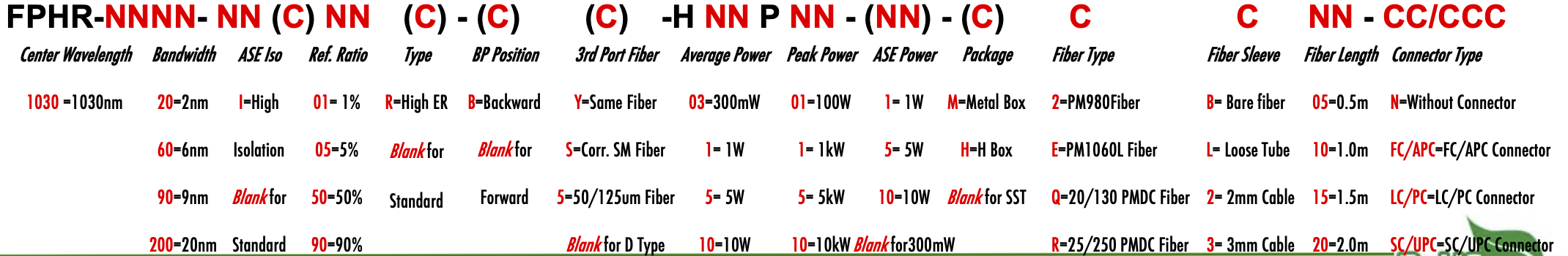 FPHR 1030nm Singlemode PM Fiber Bandpass Filter Tap coupler splitter Hybrid Bandwidth 1.3nm 2nm 2.0nm 4nm 4.0nm 6nm 6.0nm 8nm 8.0nm 10nm 10.0nm 12nm 12.0nm 13nm 13.0nm 20nm 20.0nm optical fiber bandpass filter with partial reflective fiber mirror or tap coupler or splitter hybrid device or bandstop filter filtre passe-bande à fibre optique avec miroir à fibre à réflexion partielle ou coupleur de prise ou dispositif hybride séparateur ou filtre coupe-bande Bandpassfilter aus optischen Fasern mit teilweise reflektierendem Faserspiegel oder Abzweigkoppler oder Splitter-Hybridgerät oder Bandsperrfilter filtro passa banda in fibra ottica con specchio in fibra riflettente parziale o accoppiatore a presa o dispositivo ibrido sdoppiatore o filtro elimina banda filtro passa-banda de fibra óptica com espelho de fibra reflexiva parcial ou acoplador de torneira ou dispositivo híbrido divisor ou filtro de parada de banda Filtro de paso de banda de fibra óptica con espejo de fibra reflectante parcial o acoplador de grifo o dispositivo híbrido divisor o filtro de parada de banda optinen kuitukaistanpäästösuodatin osittain heijastavalla kuitupeilillä tai hanan liittimellä tai jakajahybridilaitteella tai kaistanstop-suodattimella glasvezelbanddoorlaatfilter met gedeeltelijk reflecterende vezelspiegel of kraankoppeling of splitter hybride apparaat of bandstopfilter pásmový filtr s optickým vláknem s ?áste?ným reflexním vláknovým zrcadlem nebo odbo?ovací spojkou nebo rozbo?ovacím hybridním za?ízením nebo pásmovým filtrem ?wiat?owodowy filtr pasmowo-przepustowy z cz??ciowo odblaskowym lustrem ?wiat?owodowym lub hybrydowe urz?dzenie sprz?gaj?ce lub rozdzielaj?ce lub filtr pasmowy optisk fiber båndpassfilter med delvis reflekterende fiberspeil eller tappkobling eller splitter hybrid enhet eller båndstoppfilter PM980 PM980XP PM980HP LMA 6/125um 10/125um 10/130um 12/130um 15/125um 15/130um 20/125um 20/130um 25/250um 30/250um SC Single Clad Cladding DC Double Clad or large mode area fiber fibre à simple gaine ou fibre à double gaine ou fibre à grande zone de mode ingle Clad-Faser oder Double Clad-Faser oder Large-Mode-Area-Faser ibra con revestimiento simple o fibra con revestimiento doble o fibra de área modal grande fibra de revestimento simples ou fibra de revestimento duplo ou fibra de área de modo grande ibra a rivestimento singolo o fibra a doppio rivestimento o fibra a grande area modale yksikerroksinen kuitu tai kaksinkertainen kuitu tai suurimuotoinen kuitu 2-port D Type 3-port Y Type 4-port X Type Type D à 2 ports Type Y à 3 ports Type X à 4 ports -Port-D-Typ 3-Port-Y-Typ 4-Port-X-Typ Tipo D de 2 puertos Tipo Y de 3 puertos Tipo X de 4 puertos Tipo D de 2 portas Tipo Y de 3 portas Tipo X de 4 portas ipo D a 2 porte Tipo Y a 3 porte Tipo X a 4 porte 2-porttinen D-tyyppi 3-porttinen Y-tyyppi 4-porttinen X-tyyppi Polarization Maintaining PM Extinction Ratio ER Panda tie maintien de la polarisation fibre panda ou cravate avec taux d'extinction polarisationserhaltende Panda- oder Bindefaser mit Extinktionsverhältnis polarización manteniendo panda o fibra de amarre con relación de extinción polarização mantendo a fibra panda ou tie com taxa de extinção polarizzazione mantenendo panda o legare fibra con rapporto di estinzione olarisaatiota ylläpitävä panda- tai sidekuitu ekstinktiosuhteella